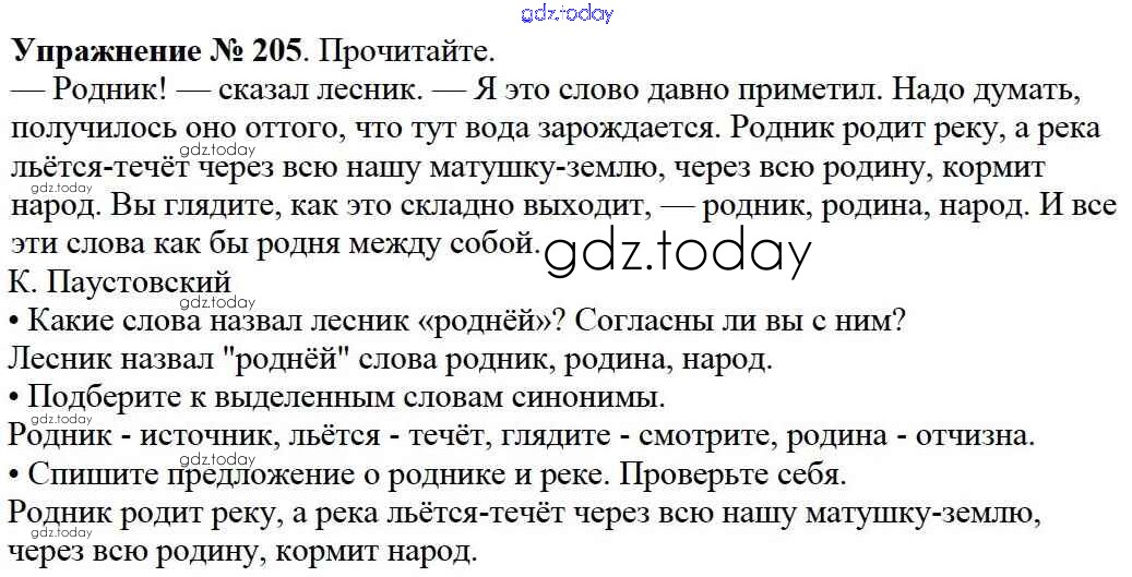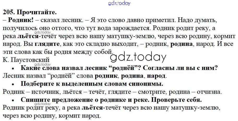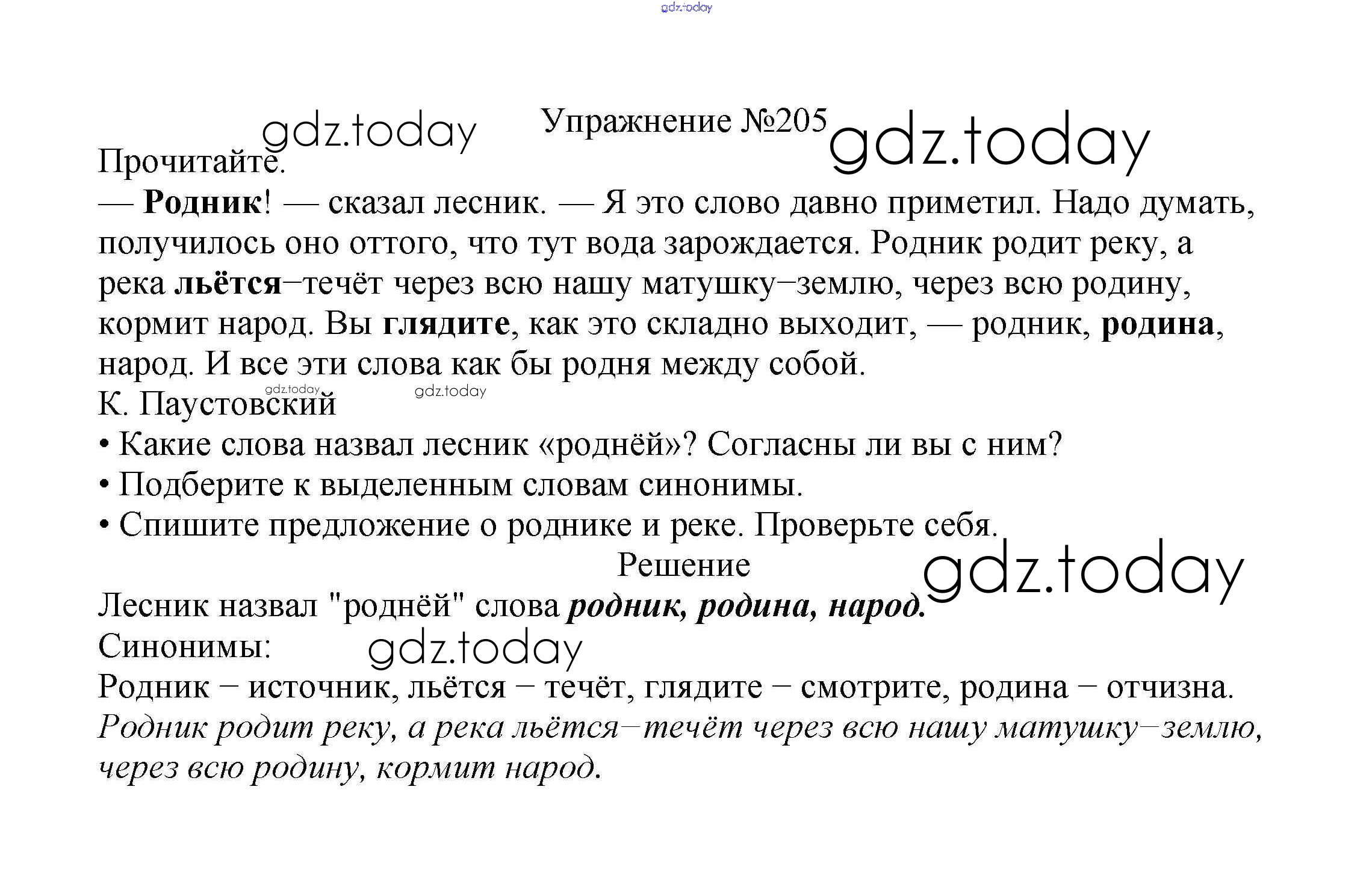 На страницах сайта gdz.today вы найдете учебный и вспомогательный материал, направленный на улучшения знаний школьной программы. ГДЗ - онлайн мир знаний Решение к части №2 (Упражнения) 205 Учебнику по Русскому языку для 2 класса Канакина, Горецкий Просвещение Школа России 2013