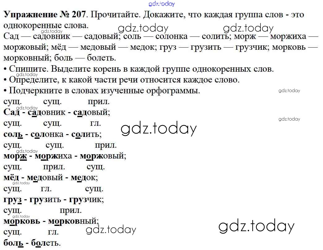 На страницах сайта gdz.today вы найдете учебный и вспомогательный материал, направленный на улучшения знаний школьной программы. ГДЗ - онлайн мир знаний Решение к части №2 (Упражнения) 207 Учебнику по Русскому языку для 2 класса Канакина, Горецкий Просвещение Школа России 2013