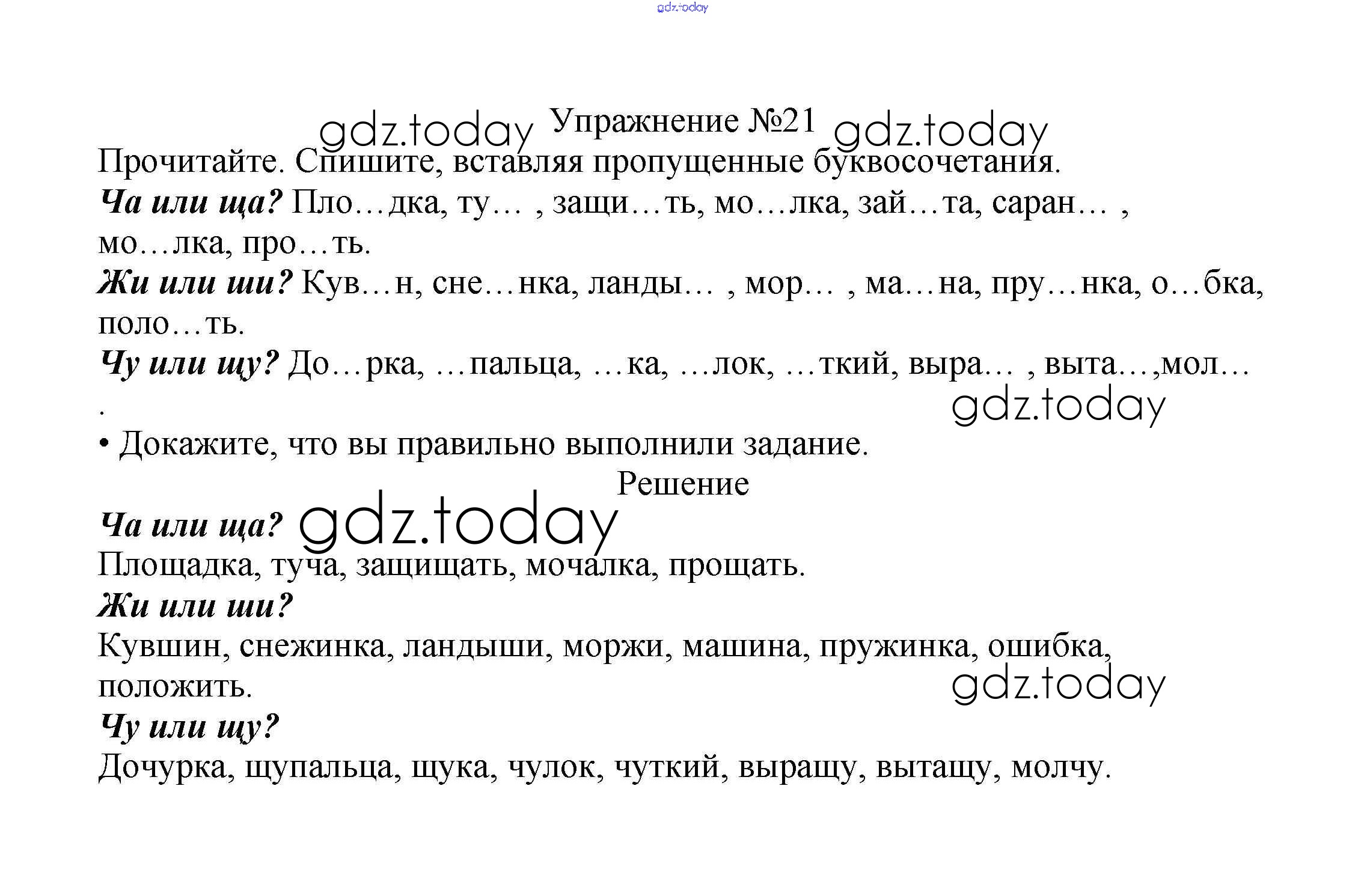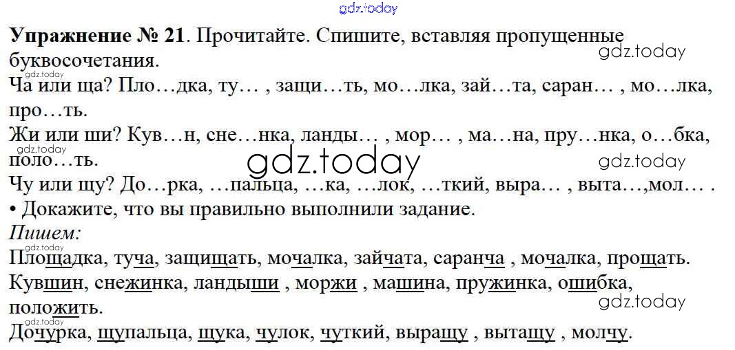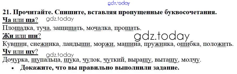 На страницах сайта gdz.today вы найдете учебный и вспомогательный материал, направленный на улучшения знаний школьной программы. ГДЗ - онлайн мир знаний Решение к части №2 (Упражнения) 21 Учебнику по Русскому языку для 2 класса Канакина, Горецкий Просвещение Школа России 2013