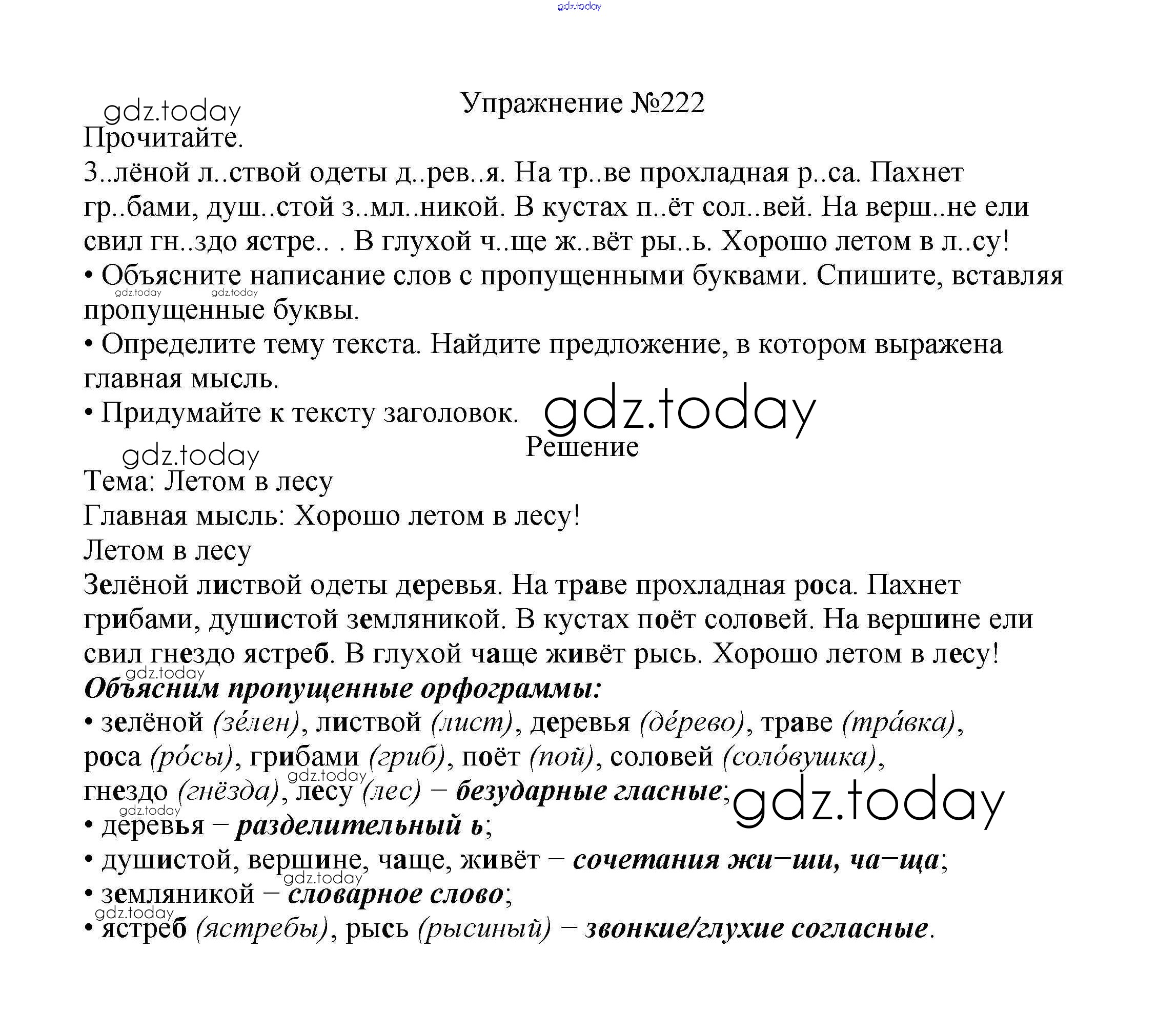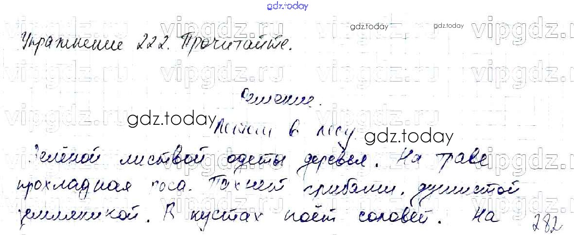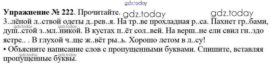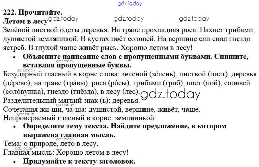 На страницах сайта gdz.today вы найдете учебный и вспомогательный материал, направленный на улучшения знаний школьной программы. ГДЗ - онлайн мир знаний Решение к части №2 (Упражнения) 222 Учебнику по Русскому языку для 2 класса Канакина, Горецкий Просвещение Школа России 2013