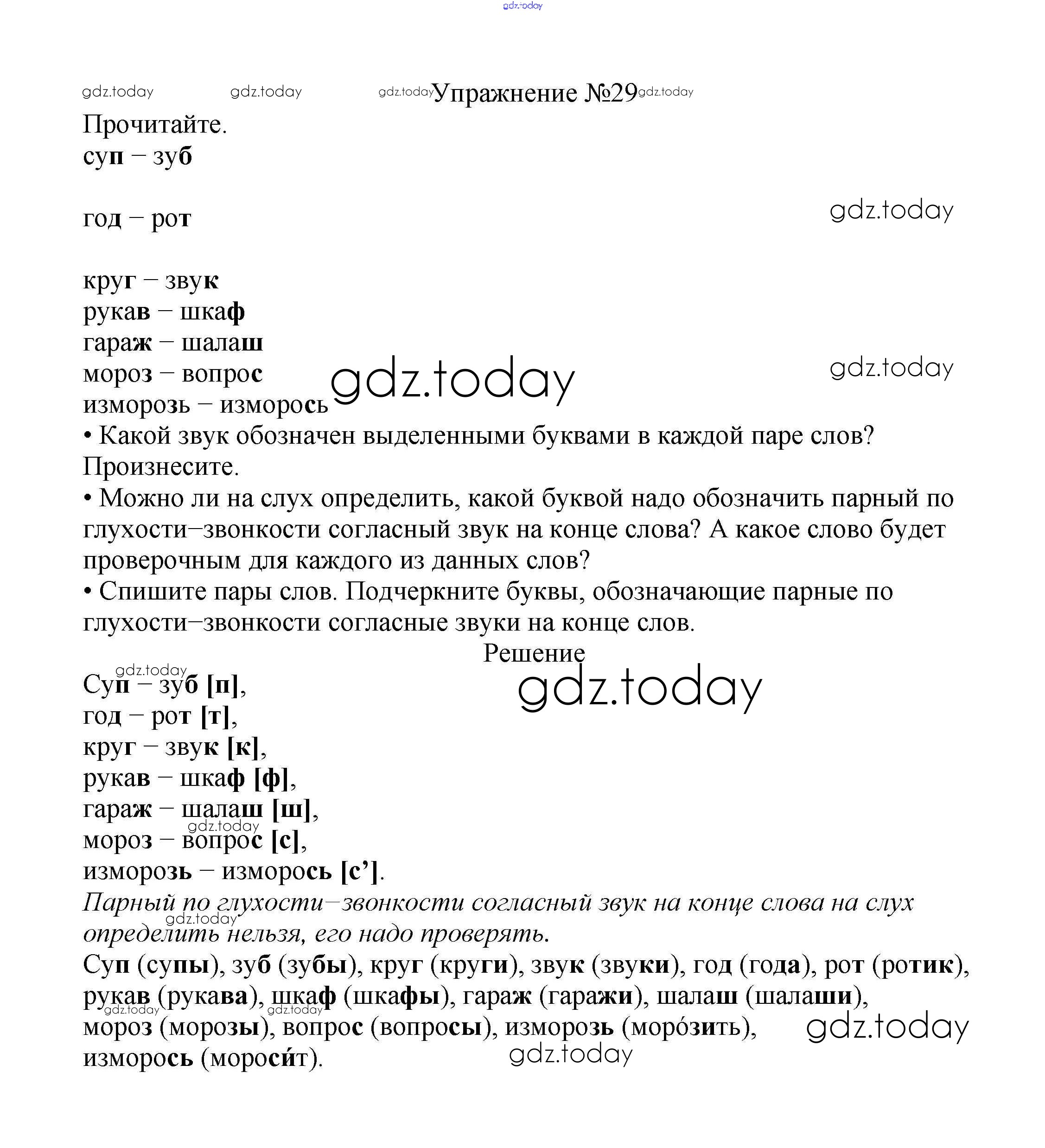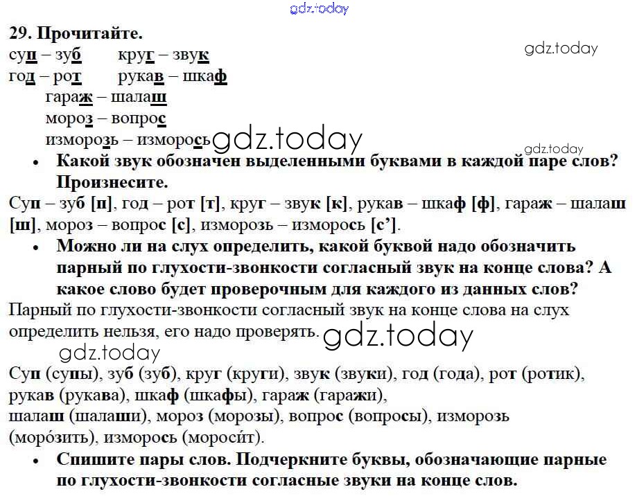 На страницах сайта gdz.today вы найдете учебный и вспомогательный материал, направленный на улучшения знаний школьной программы. ГДЗ - онлайн мир знаний Решение к части №2 (Упражнения) 29 Учебнику по Русскому языку для 2 класса Канакина, Горецкий Просвещение Школа России 2013