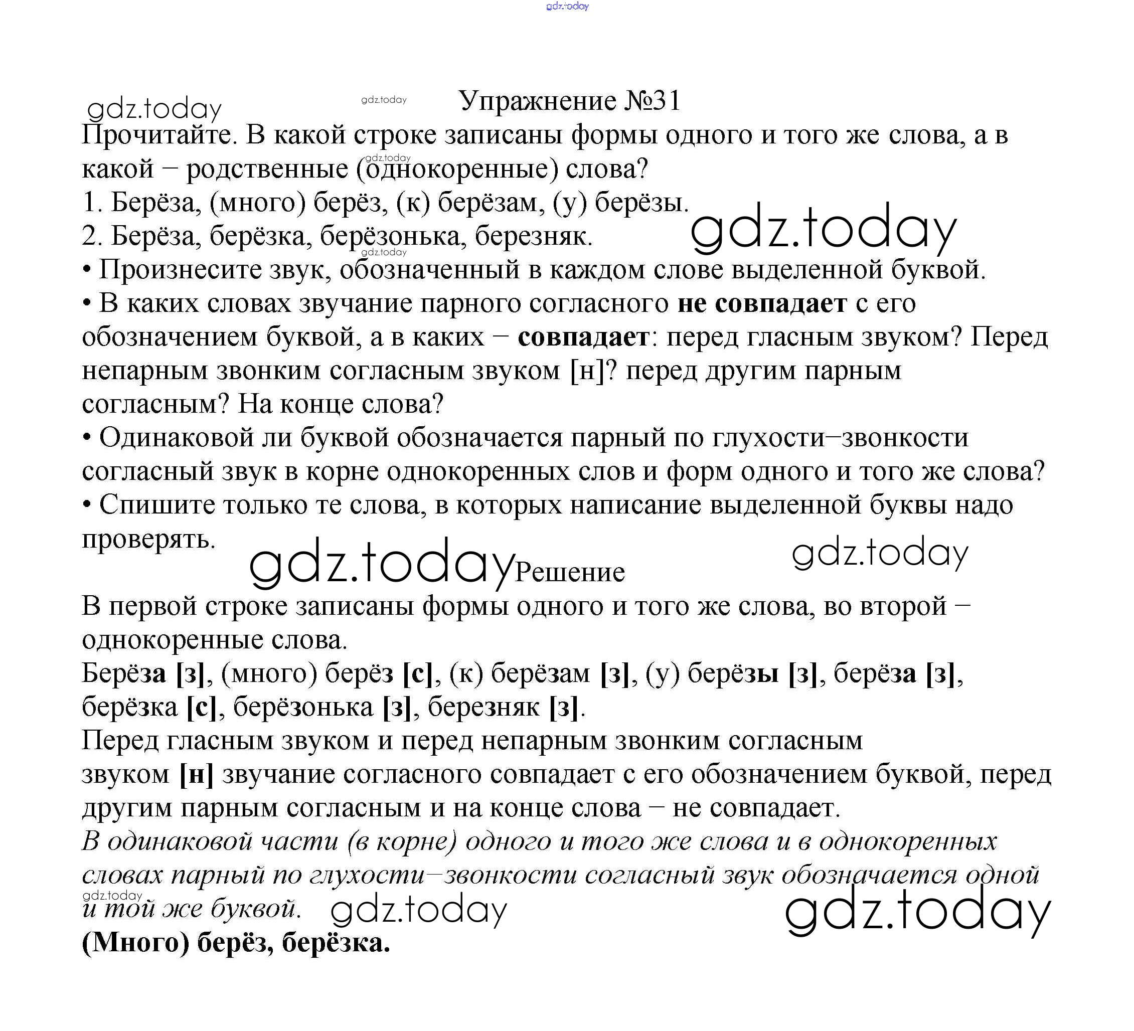 На страницах сайта gdz.today вы найдете учебный и вспомогательный материал, направленный на улучшения знаний школьной программы. ГДЗ - онлайн мир знаний Решение к части №2 (Упражнения) 31 Учебнику по Русскому языку для 2 класса Канакина, Горецкий Просвещение Школа России 2013