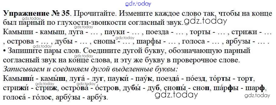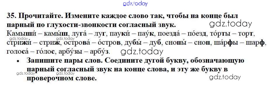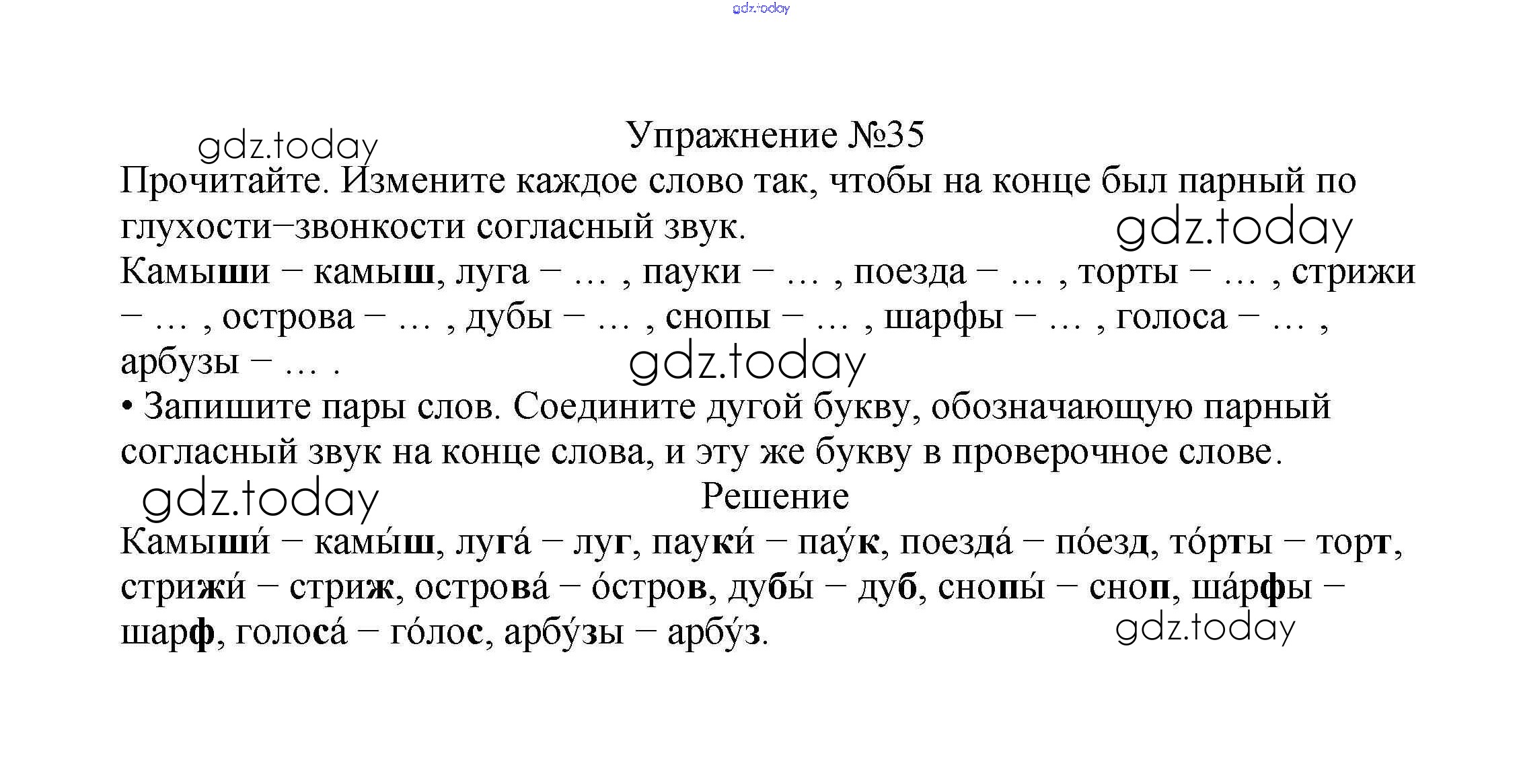 На страницах сайта gdz.today вы найдете учебный и вспомогательный материал, направленный на улучшения знаний школьной программы. ГДЗ - онлайн мир знаний Решение к части №2 (Упражнения) 35 Учебнику по Русскому языку для 2 класса Канакина, Горецкий Просвещение Школа России 2013