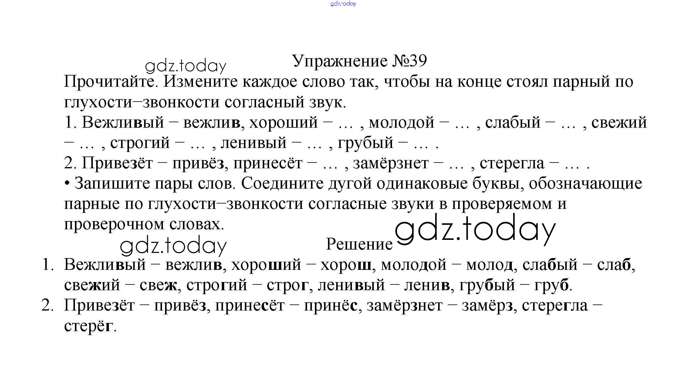 На страницах сайта gdz.today вы найдете учебный и вспомогательный материал, направленный на улучшения знаний школьной программы. ГДЗ - онлайн мир знаний Решение к части №2 (Упражнения) 39 Учебнику по Русскому языку для 2 класса Канакина, Горецкий Просвещение Школа России 2013