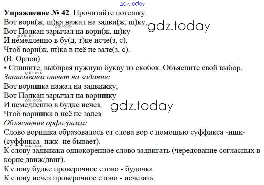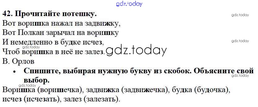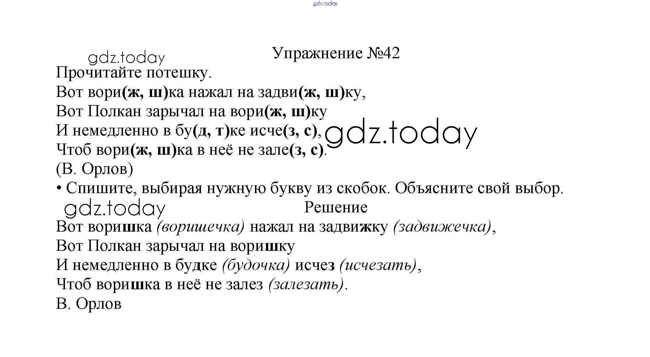 На страницах сайта gdz.today вы найдете учебный и вспомогательный материал, направленный на улучшения знаний школьной программы. ГДЗ - онлайн мир знаний Решение к части №2 (Упражнения) 42 Учебнику по Русскому языку для 2 класса Канакина, Горецкий Просвещение Школа России 2013