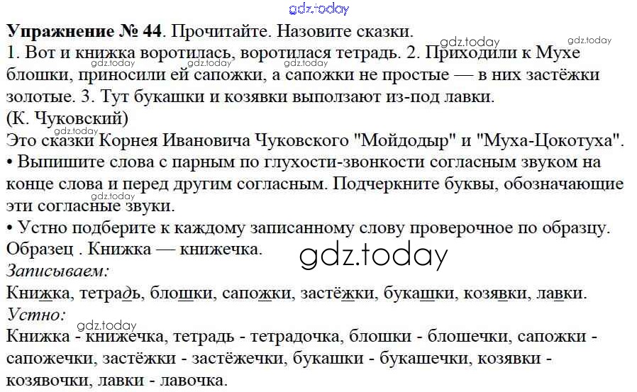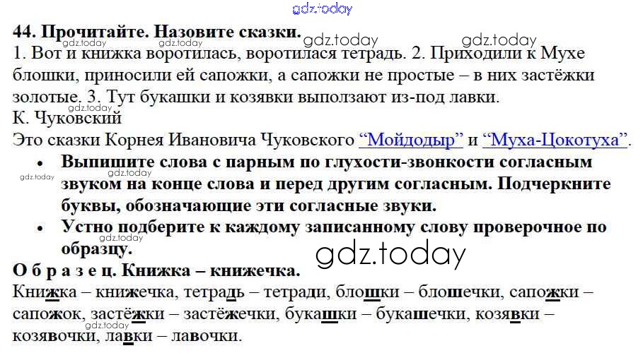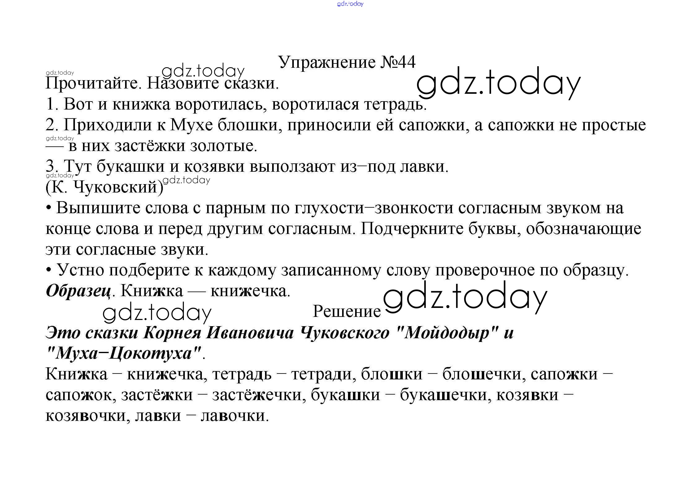 На страницах сайта gdz.today вы найдете учебный и вспомогательный материал, направленный на улучшения знаний школьной программы. ГДЗ - онлайн мир знаний Решение к части №2 (Упражнения) 44 Учебнику по Русскому языку для 2 класса Канакина, Горецкий Просвещение Школа России 2013