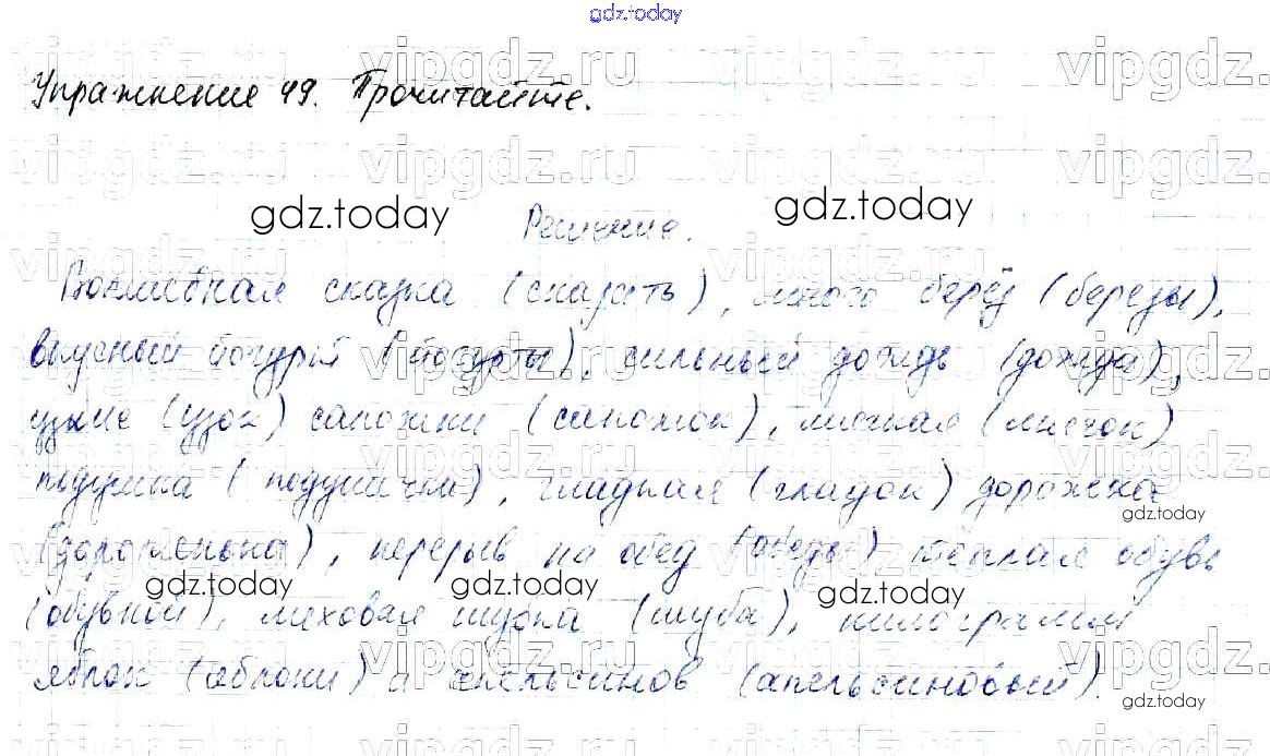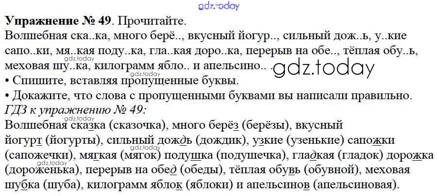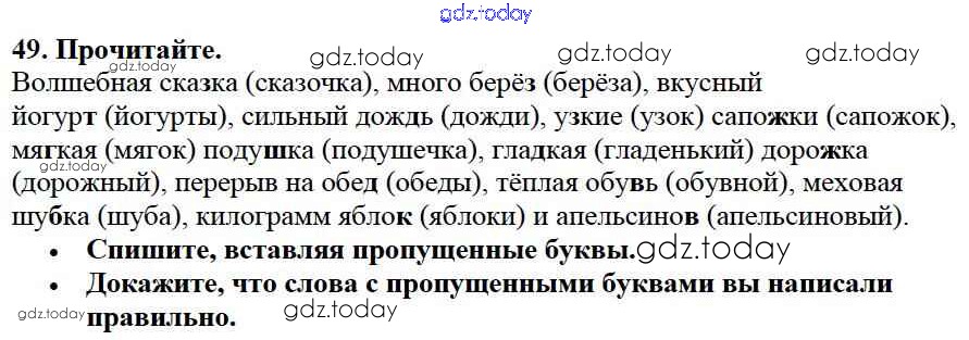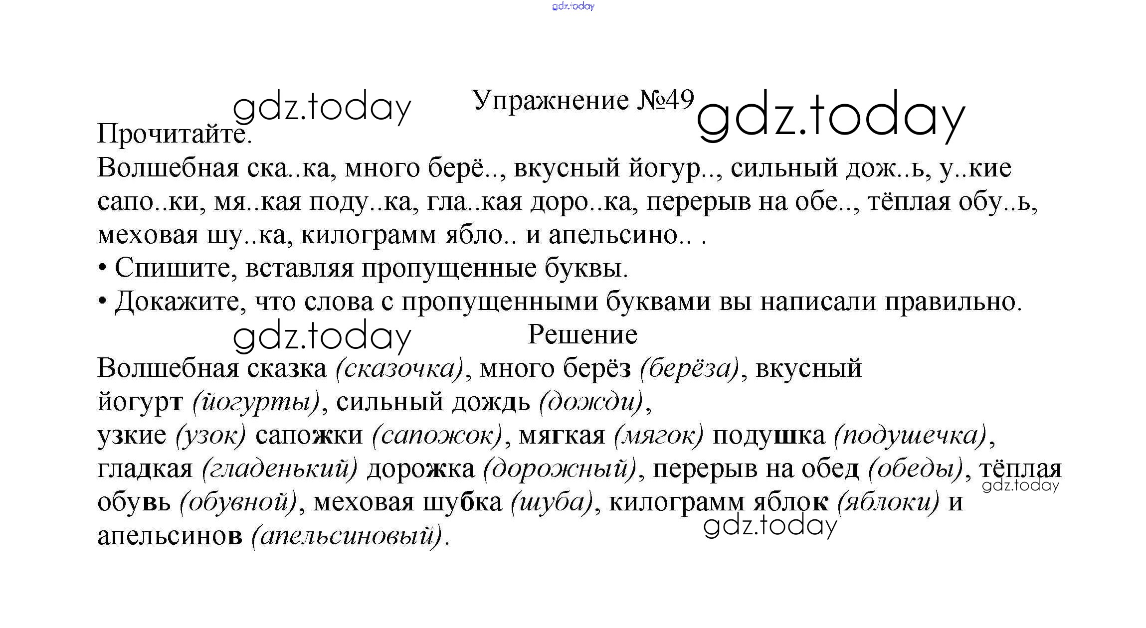 На страницах сайта gdz.today вы найдете учебный и вспомогательный материал, направленный на улучшения знаний школьной программы. ГДЗ - онлайн мир знаний Решение к части №2 (Упражнения) 49 Учебнику по Русскому языку для 2 класса Канакина, Горецкий Просвещение Школа России 2013
