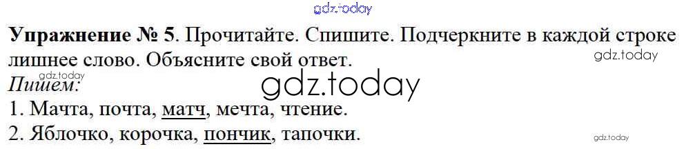 На страницах сайта gdz.today вы найдете учебный и вспомогательный материал, направленный на улучшения знаний школьной программы. ГДЗ - онлайн мир знаний Решение к части №2 (Упражнения) 5 Учебнику по Русскому языку для 2 класса Канакина, Горецкий Просвещение Школа России 2013