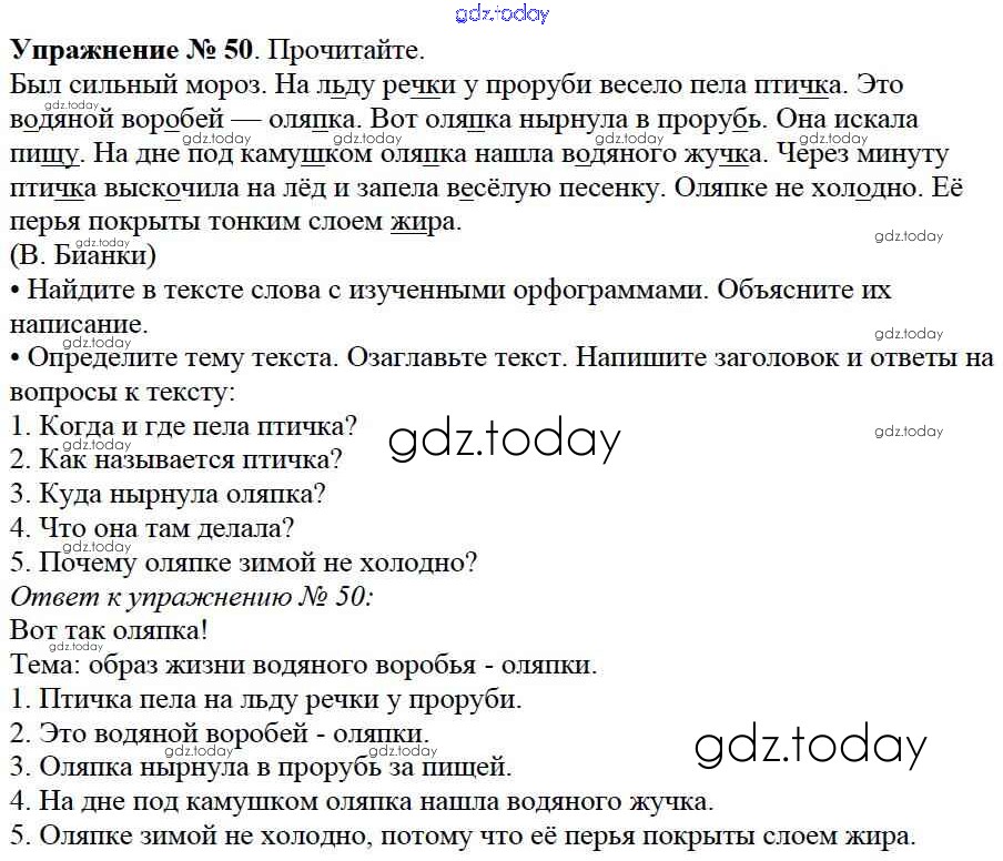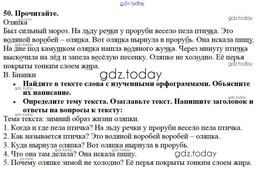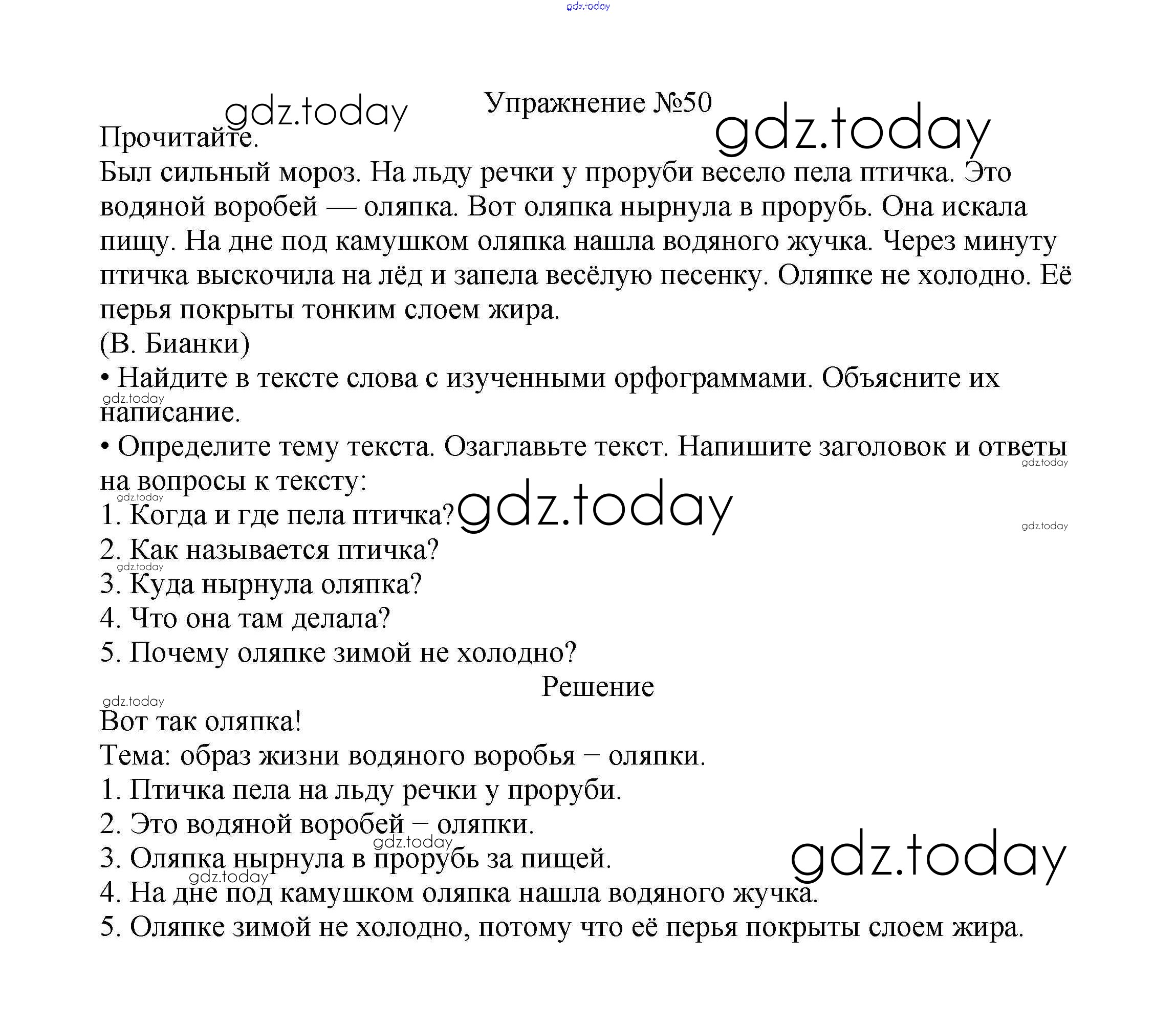 На страницах сайта gdz.today вы найдете учебный и вспомогательный материал, направленный на улучшения знаний школьной программы. ГДЗ - онлайн мир знаний Решение к части №2 (Упражнения) 50 Учебнику по Русскому языку для 2 класса Канакина, Горецкий Просвещение Школа России 2013