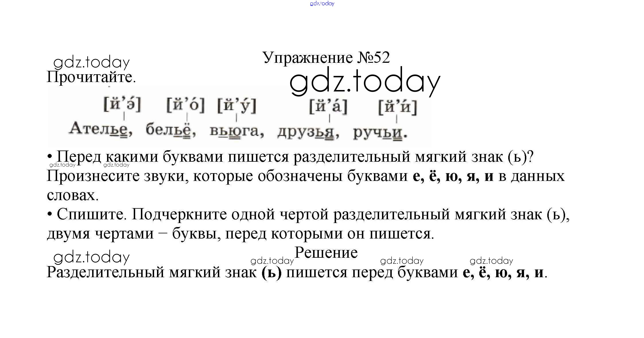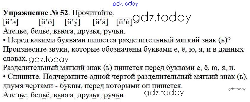 На страницах сайта gdz.today вы найдете учебный и вспомогательный материал, направленный на улучшения знаний школьной программы. ГДЗ - онлайн мир знаний Решение к части №2 (Упражнения) 52 Учебнику по Русскому языку для 2 класса Канакина, Горецкий Просвещение Школа России 2013