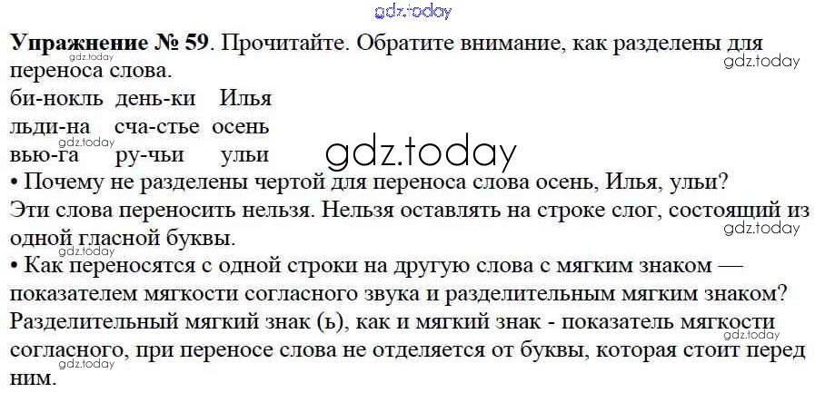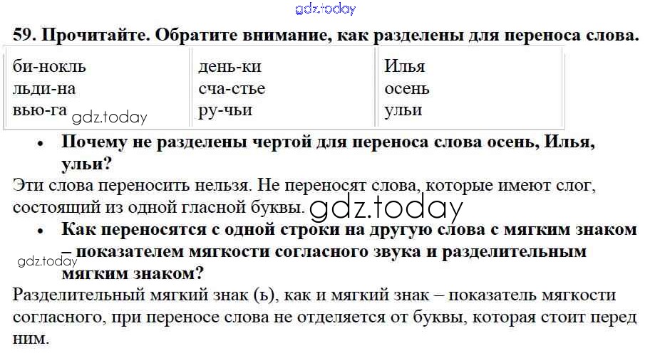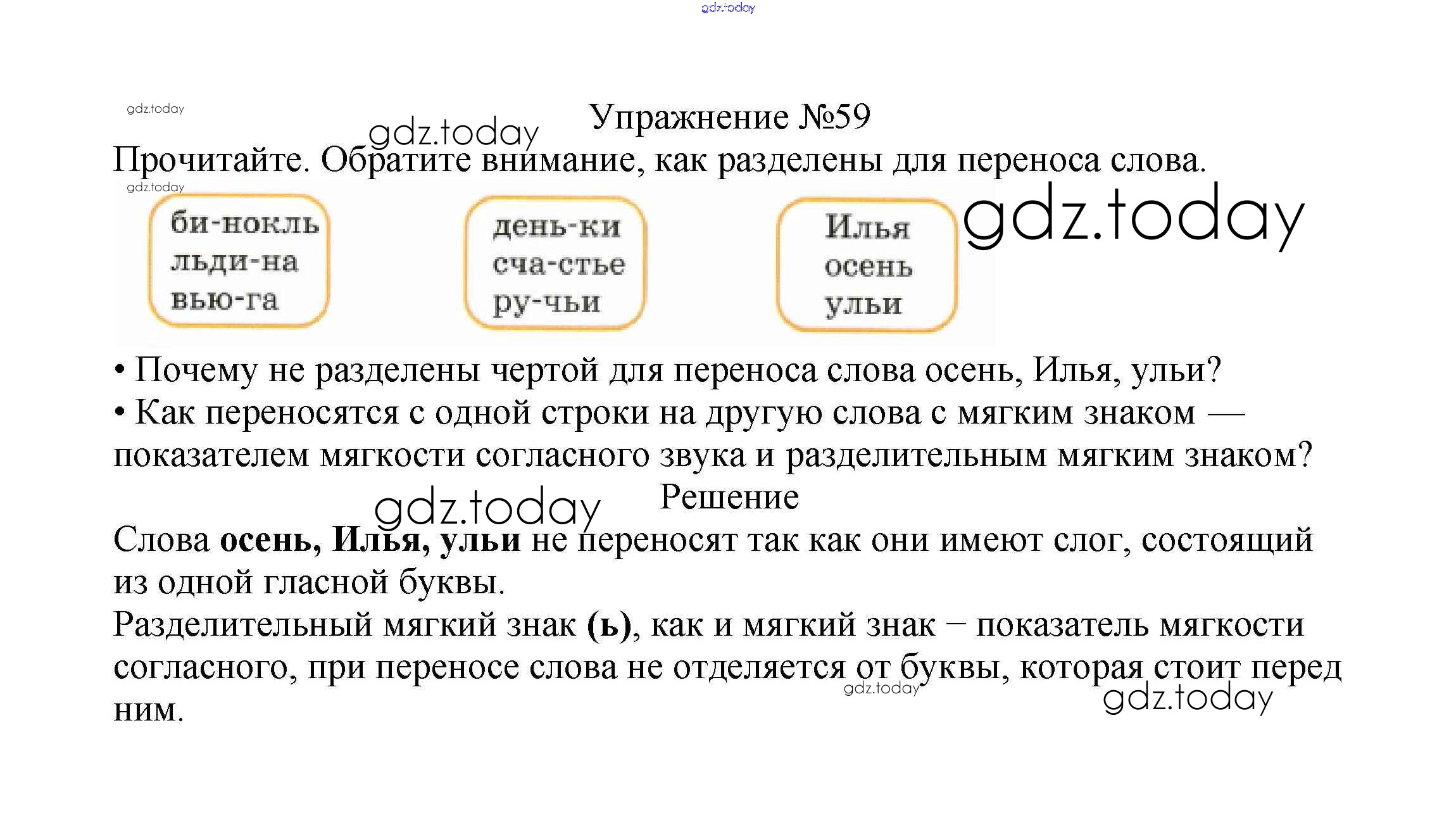 На страницах сайта gdz.today вы найдете учебный и вспомогательный материал, направленный на улучшения знаний школьной программы. ГДЗ - онлайн мир знаний Решение к части №2 (Упражнения) 59 Учебнику по Русскому языку для 2 класса Канакина, Горецкий Просвещение Школа России 2013