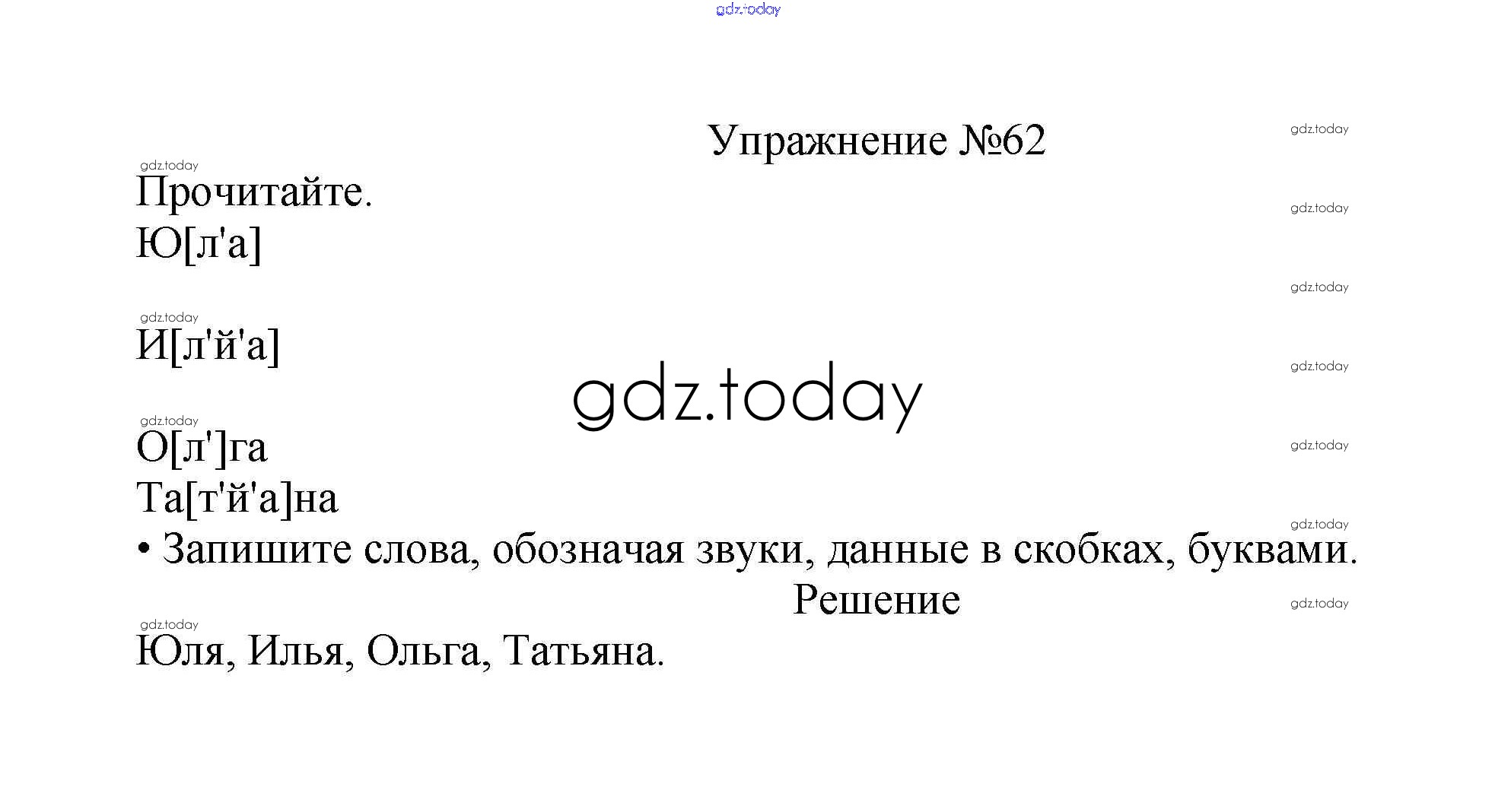 Ответы к Решение к части №2 (Упражнения) 62 Учебнику по Русскому языку для 2 класса Канакина, Горецкий Просвещение Школа России 2013