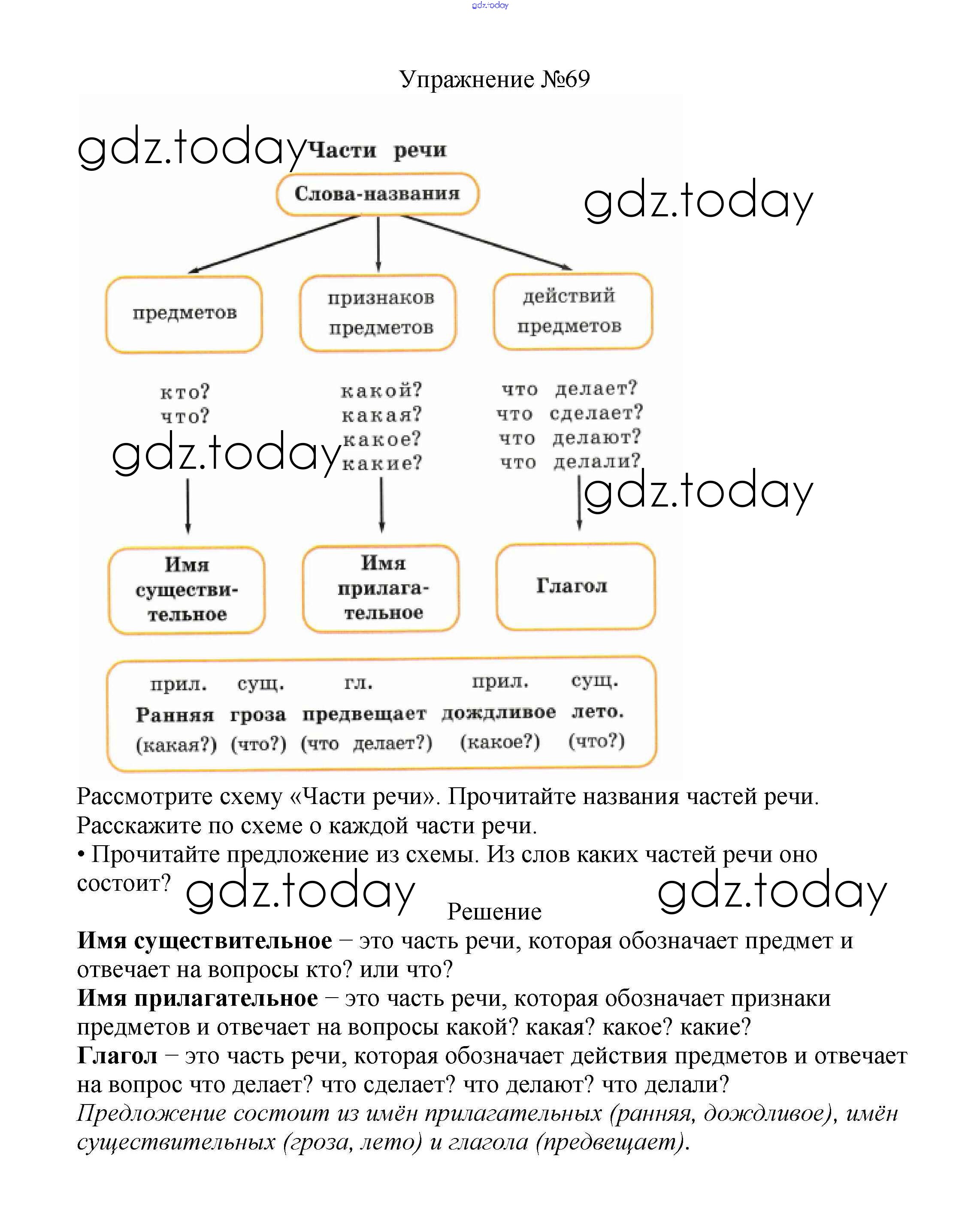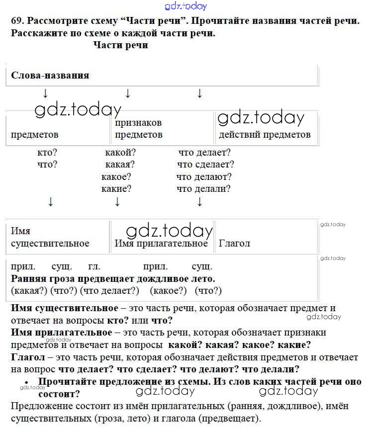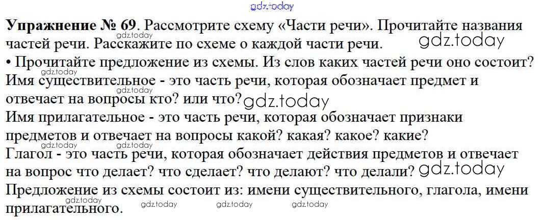 На страницах сайта gdz.today вы найдете учебный и вспомогательный материал, направленный на улучшения знаний школьной программы. ГДЗ - онлайн мир знаний Решение к части №2 (Упражнения) 69 Учебнику по Русскому языку для 2 класса Канакина, Горецкий Просвещение Школа России 2013