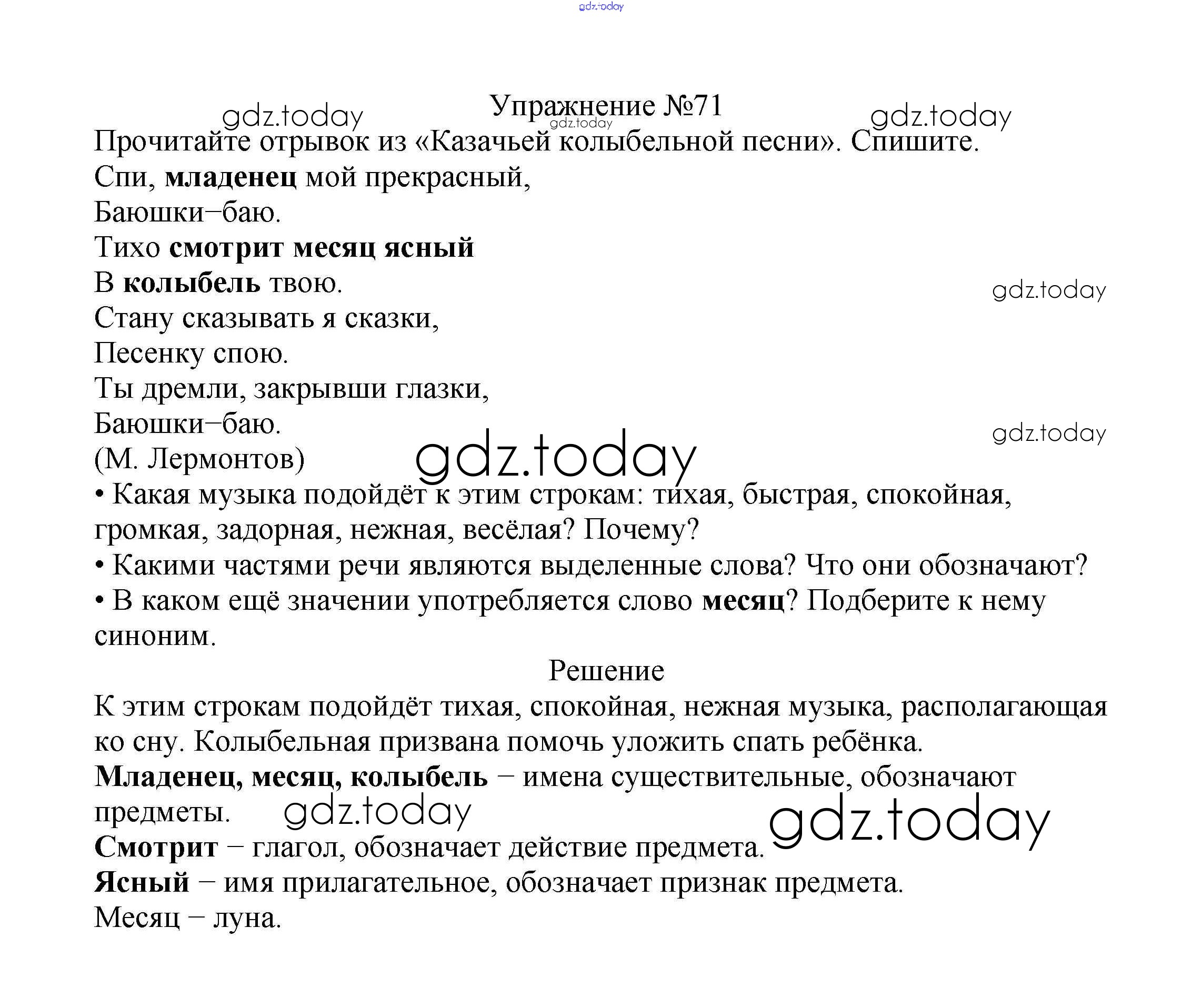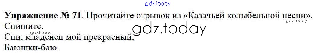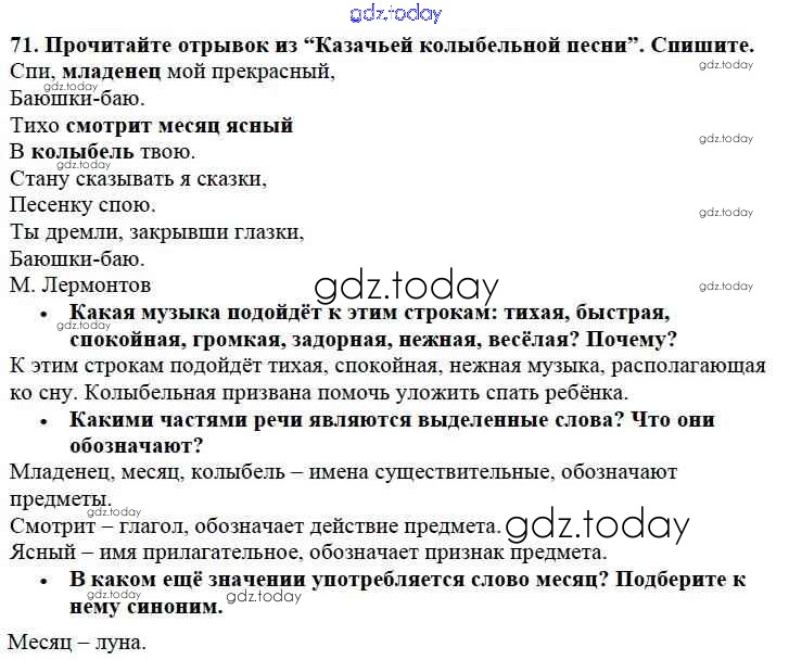 На страницах сайта gdz.today вы найдете учебный и вспомогательный материал, направленный на улучшения знаний школьной программы. ГДЗ - онлайн мир знаний Решение к части №2 (Упражнения) 71 Учебнику по Русскому языку для 2 класса Канакина, Горецкий Просвещение Школа России 2013