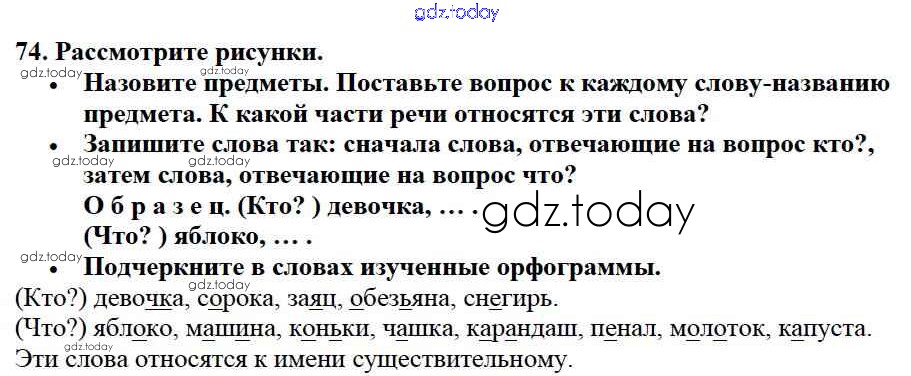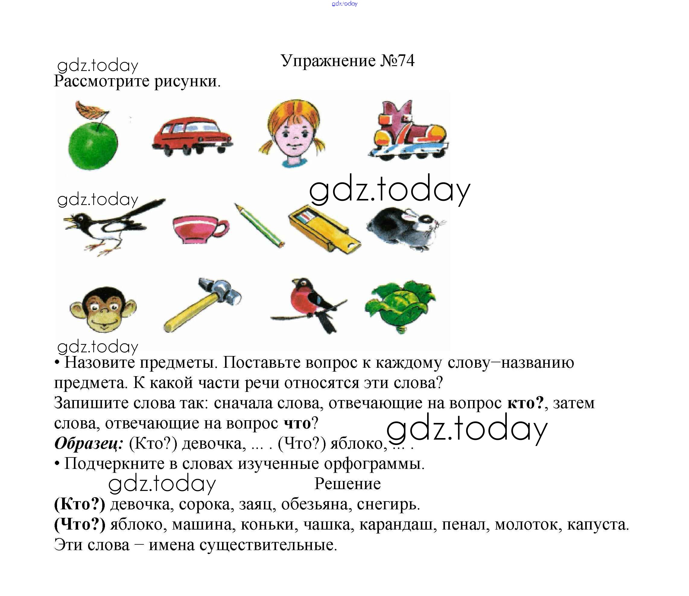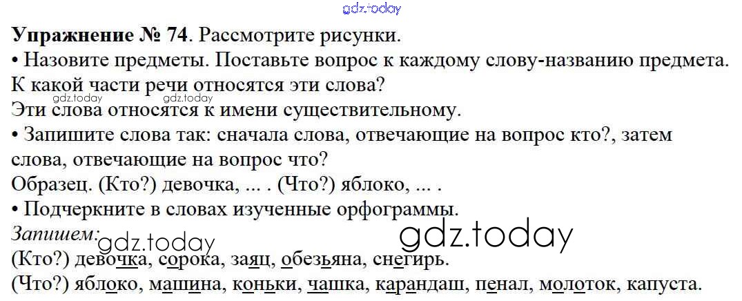 На страницах сайта gdz.today вы найдете учебный и вспомогательный материал, направленный на улучшения знаний школьной программы. ГДЗ - онлайн мир знаний Решение к части №2 (Упражнения) 74 Учебнику по Русскому языку для 2 класса Канакина, Горецкий Просвещение Школа России 2013