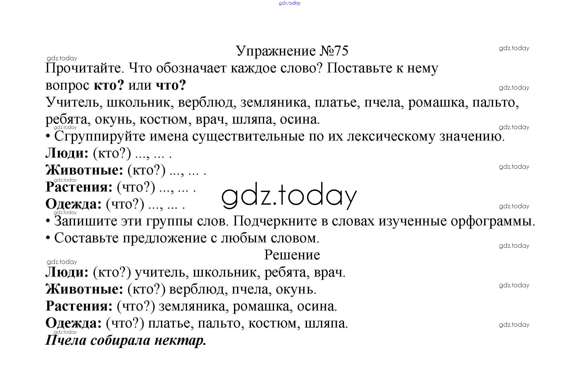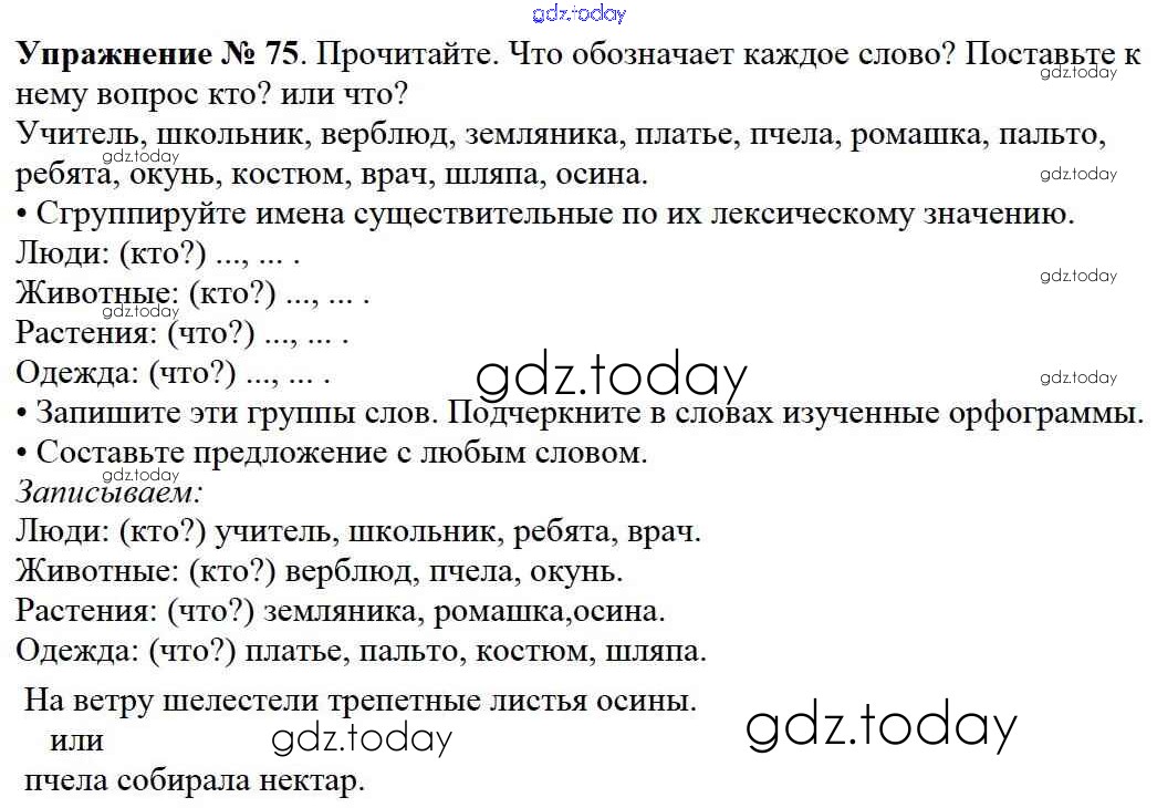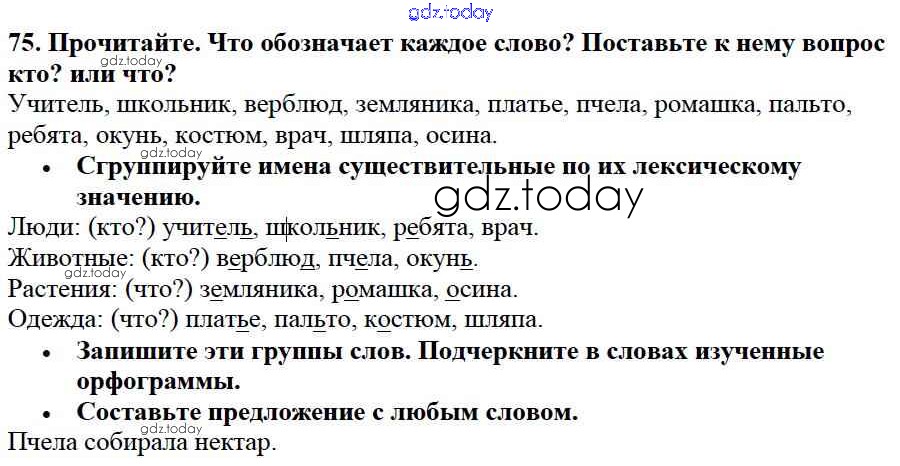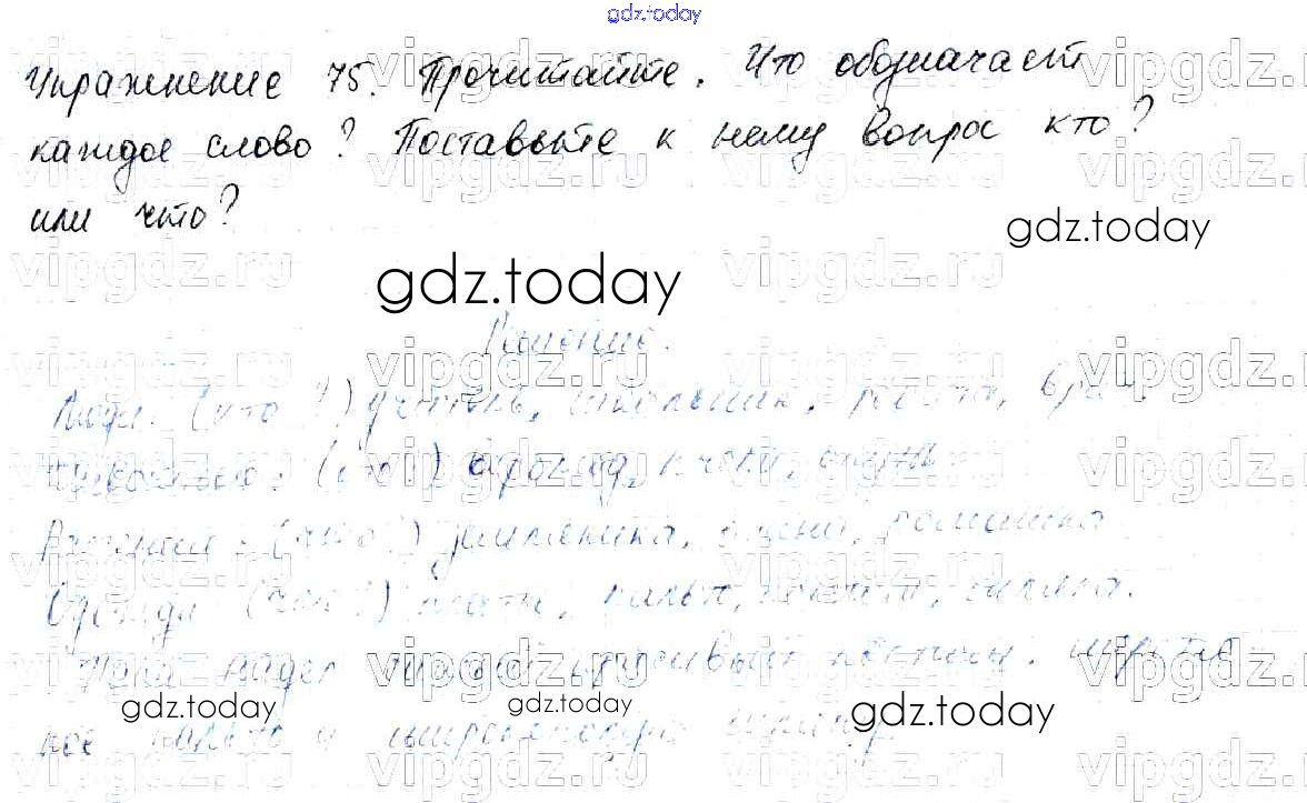 На страницах сайта gdz.today вы найдете учебный и вспомогательный материал, направленный на улучшения знаний школьной программы. ГДЗ - онлайн мир знаний Решение к части №2 (Упражнения) 75 Учебнику по Русскому языку для 2 класса Канакина, Горецкий Просвещение Школа России 2013