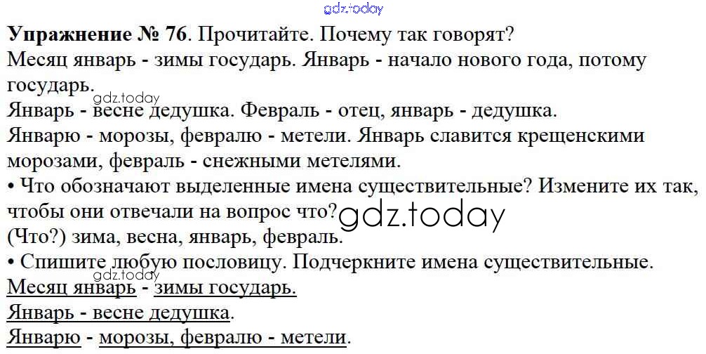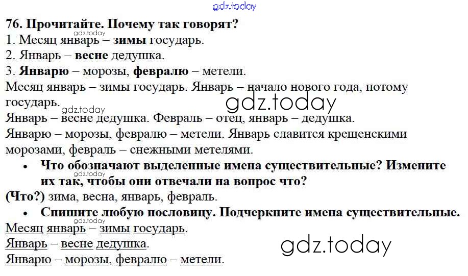 На страницах сайта gdz.today вы найдете учебный и вспомогательный материал, направленный на улучшения знаний школьной программы. ГДЗ - онлайн мир знаний Решение к части №2 (Упражнения) 76 Учебнику по Русскому языку для 2 класса Канакина, Горецкий Просвещение Школа России 2013