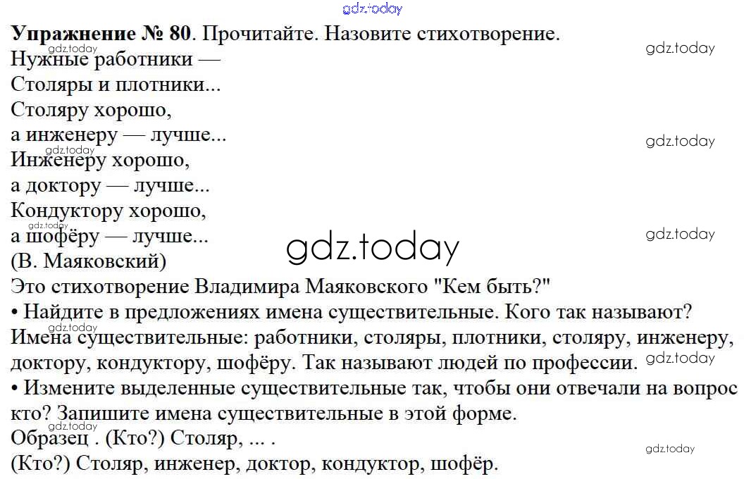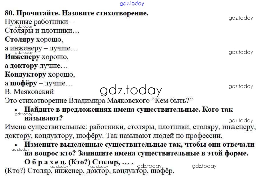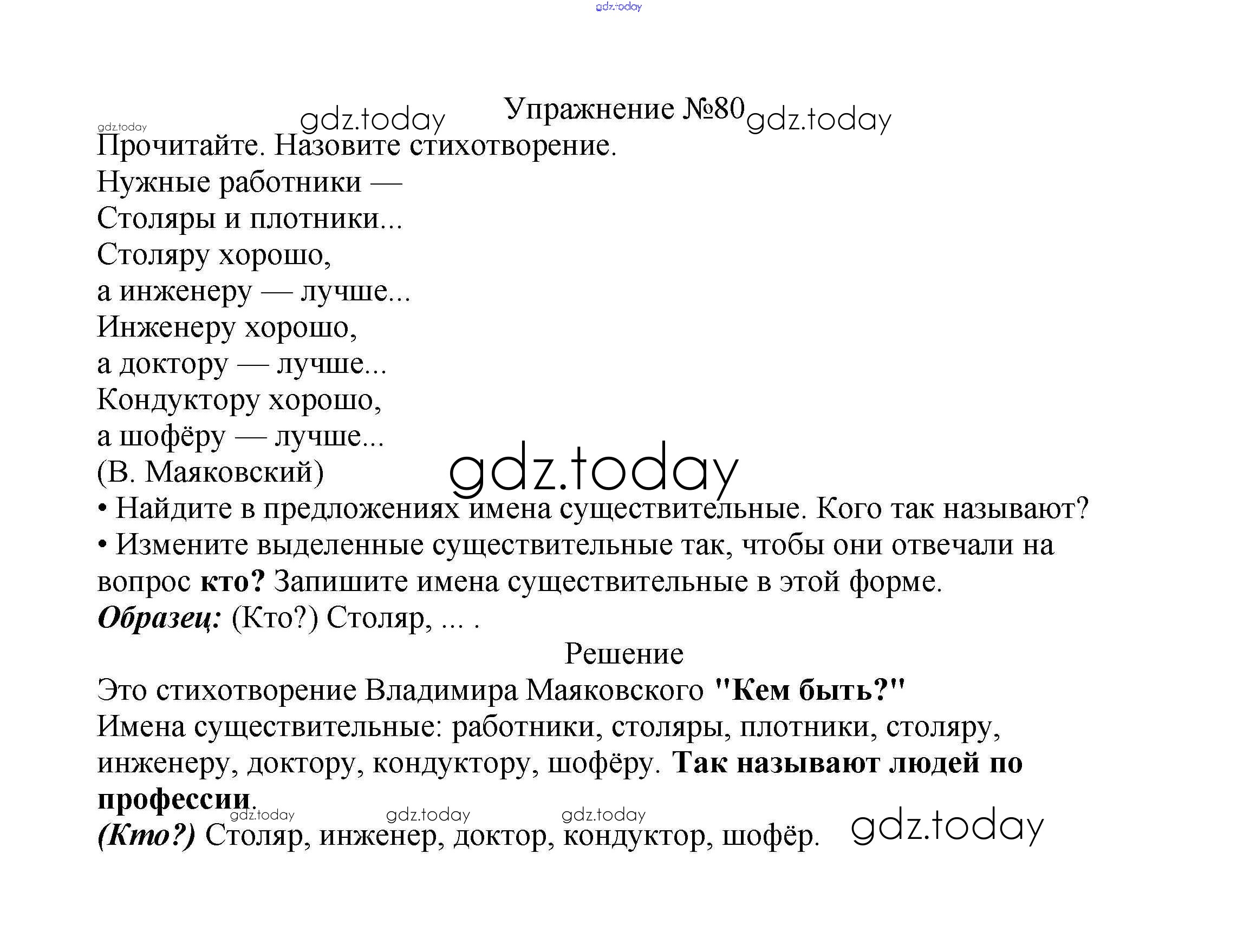 На страницах сайта gdz.today вы найдете учебный и вспомогательный материал, направленный на улучшения знаний школьной программы. ГДЗ - онлайн мир знаний Решение к части №2 (Упражнения) 80 Учебнику по Русскому языку для 2 класса Канакина, Горецкий Просвещение Школа России 2013
