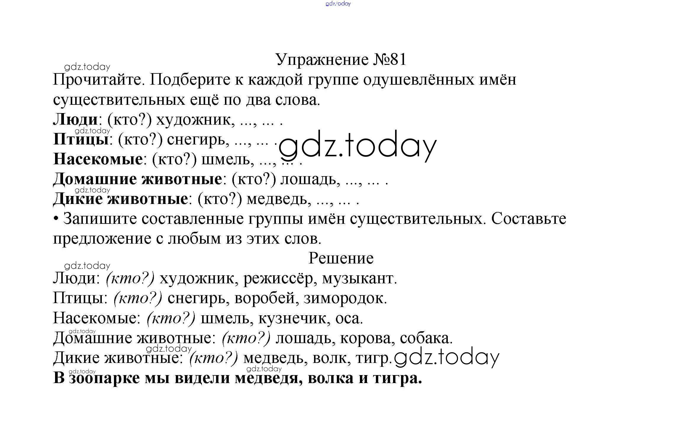 Ответы к Решение к части №2 (Упражнения) 81 Учебнику по Русскому языку для 2 класса Канакина, Горецкий Просвещение Школа России 2013
