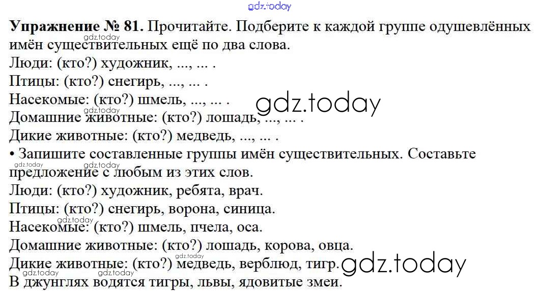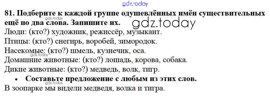 На страницах сайта gdz.today вы найдете учебный и вспомогательный материал, направленный на улучшения знаний школьной программы. ГДЗ - онлайн мир знаний Решение к части №2 (Упражнения) 81 Учебнику по Русскому языку для 2 класса Канакина, Горецкий Просвещение Школа России 2013