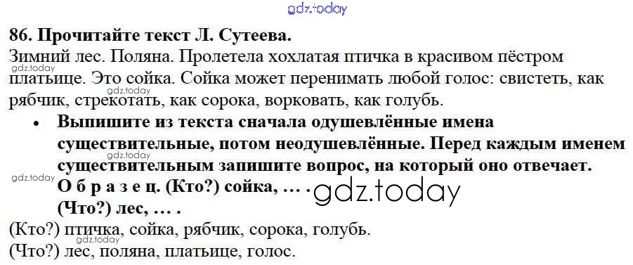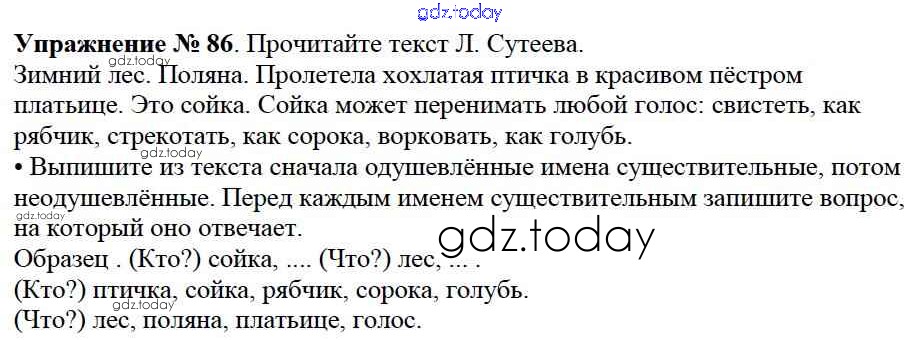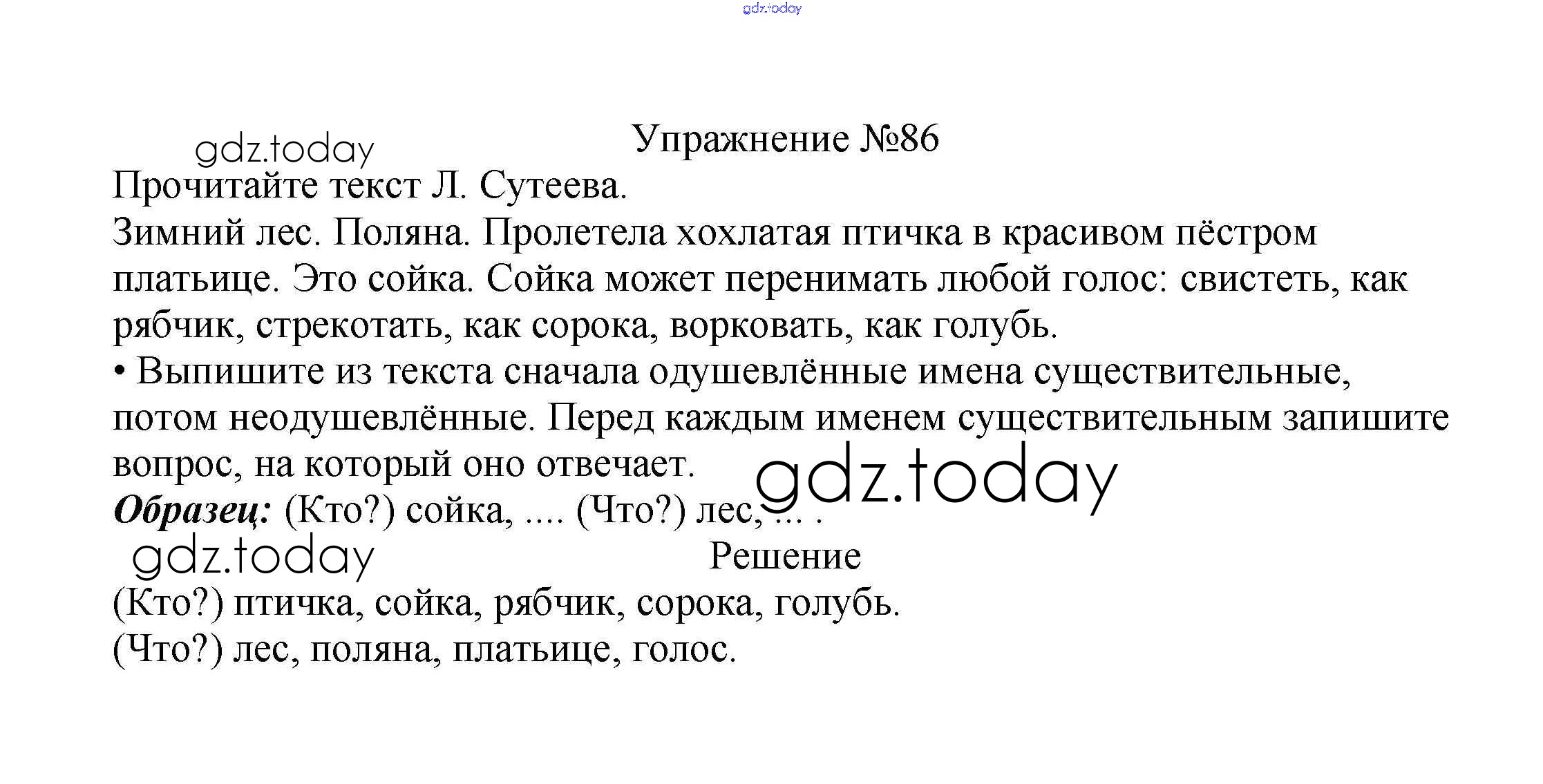 На страницах сайта gdz.today вы найдете учебный и вспомогательный материал, направленный на улучшения знаний школьной программы. ГДЗ - онлайн мир знаний Решение к части №2 (Упражнения) 86 Учебнику по Русскому языку для 2 класса Канакина, Горецкий Просвещение Школа России 2013