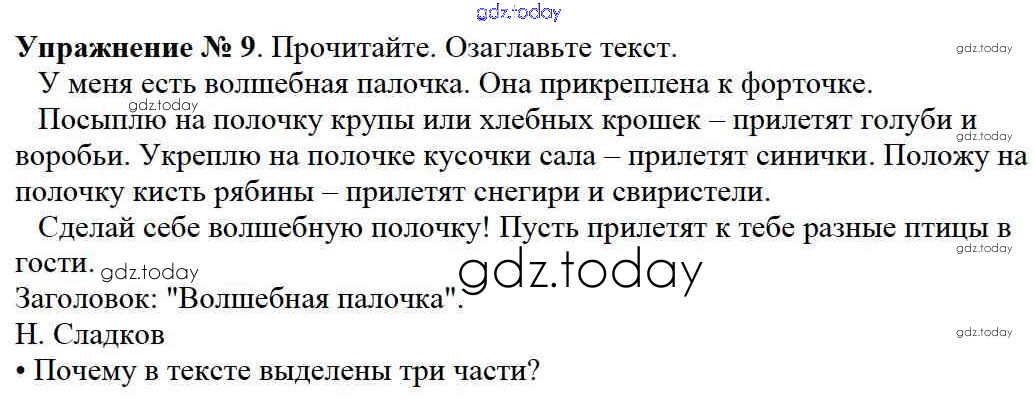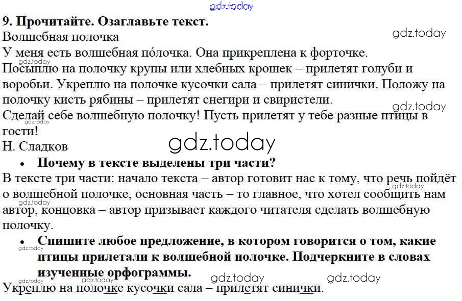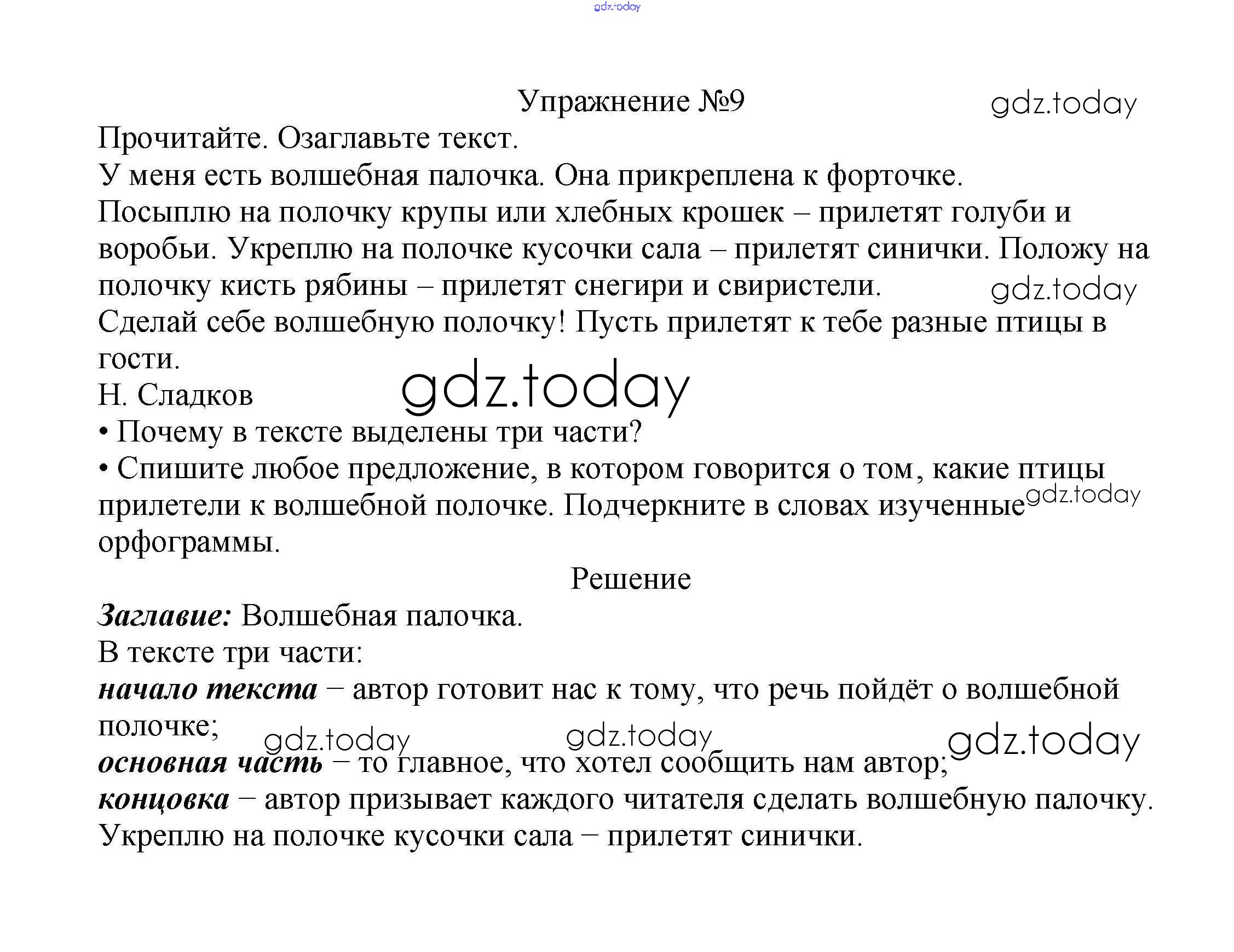 На страницах сайта gdz.today вы найдете учебный и вспомогательный материал, направленный на улучшения знаний школьной программы. ГДЗ - онлайн мир знаний Решение к части №2 (Упражнения) 9 Учебнику по Русскому языку для 2 класса Канакина, Горецкий Просвещение Школа России 2013