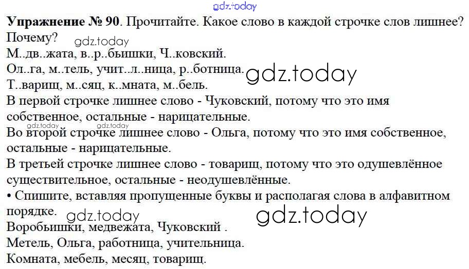 На страницах сайта gdz.today вы найдете учебный и вспомогательный материал, направленный на улучшения знаний школьной программы. ГДЗ - онлайн мир знаний Решение к части №2 (Упражнения) 90 Учебнику по Русскому языку для 2 класса Канакина, Горецкий Просвещение Школа России 2013