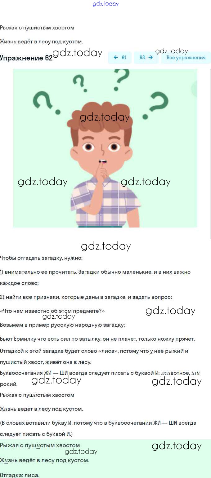 Ответы к Решение. Упражнения 62 Рабочей тетради по Русскому языку для 2 класса Климанова, Бабушкина Просвещение, Просвещение Перспектива 2016, 2020