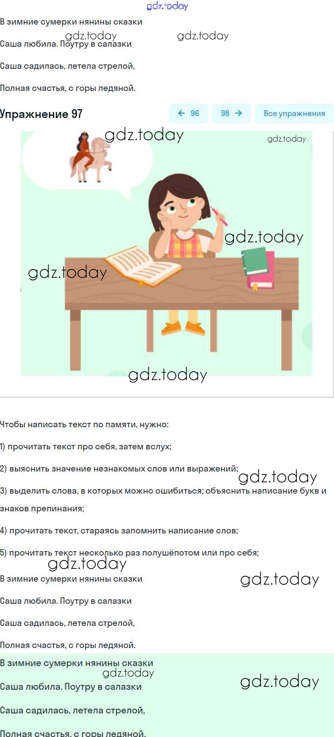 На страницах сайта gdz.today вы найдете учебный и вспомогательный материал, направленный на улучшения знаний школьной программы. ГДЗ - онлайн мир знаний Решение. Упражнения 97 Рабочей тетради по Русскому языку для 2 класса Климанова, Бабушкина Просвещение, Просвещение Перспектива 2016, 2020