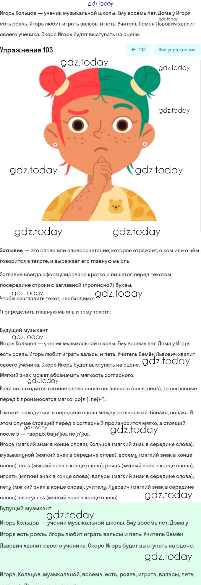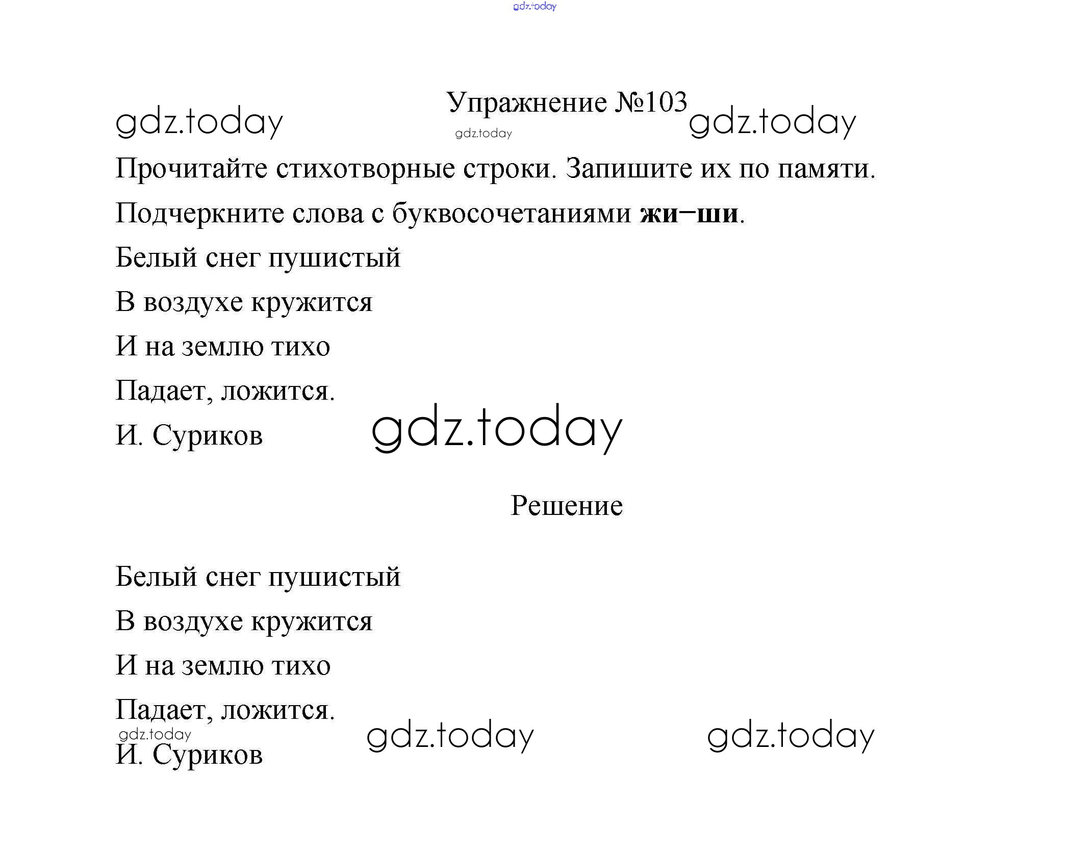На страницах сайта gdz.today вы найдете учебный и вспомогательный материал, направленный на улучшения знаний школьной программы. ГДЗ - онлайн мир знаний Упражнения Решение. Часть 1 103 Учебнику по Русскому языку для 2 класса Климанова, Бабушкина Просвещение, Просвещение Перспектива 2015, 2020