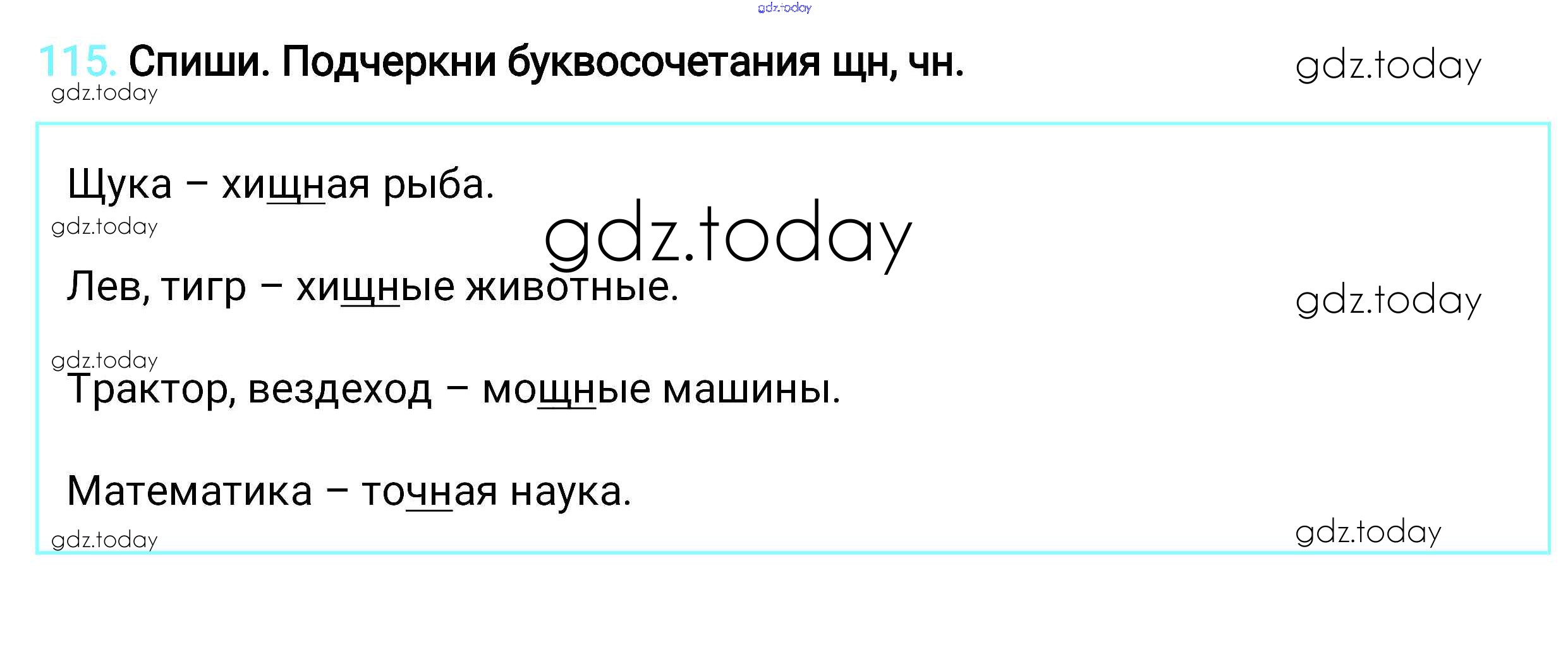 На страницах сайта gdz.today вы найдете учебный и вспомогательный материал, направленный на улучшения знаний школьной программы. ГДЗ - онлайн мир знаний Упражнения Решение. Часть 1 115 Учебнику по Русскому языку для 2 класса Климанова, Бабушкина Просвещение, Просвещение Перспектива 2015, 2020