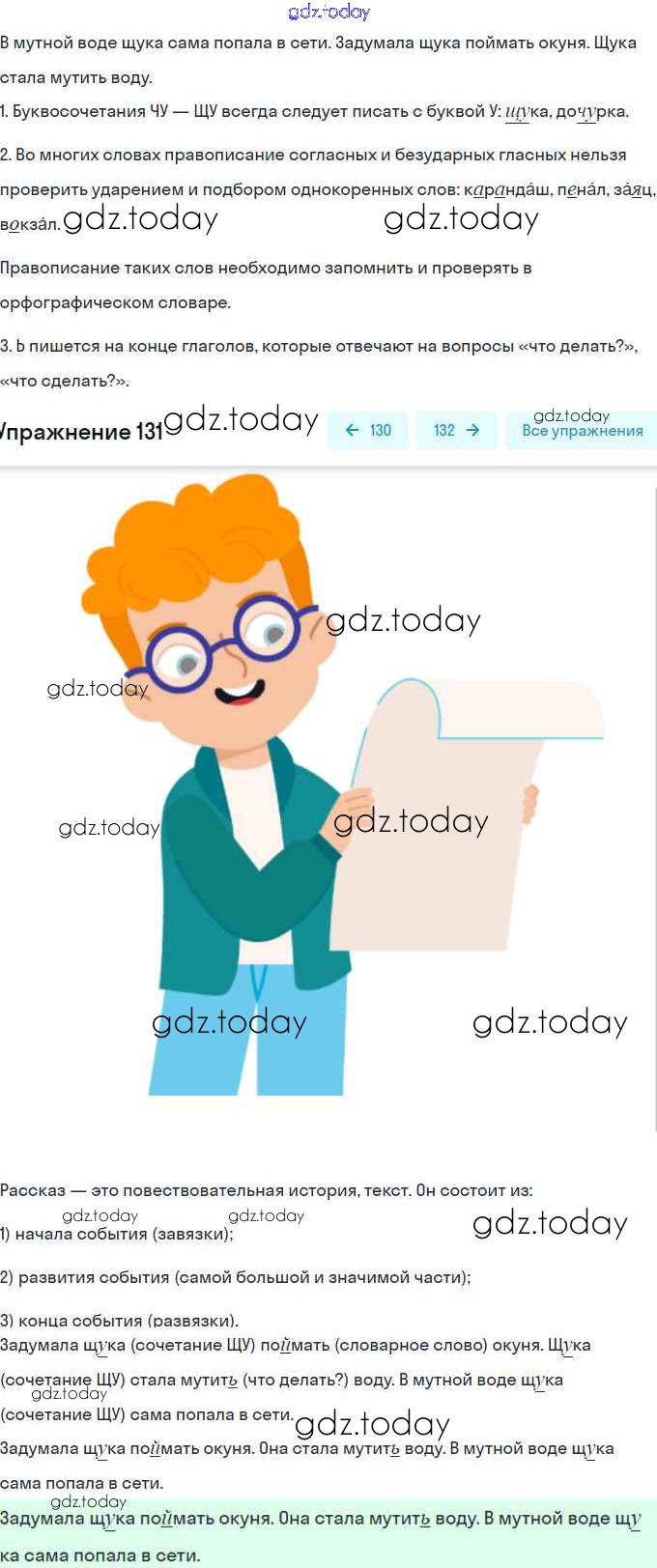 На страницах сайта gdz.today вы найдете учебный и вспомогательный материал, направленный на улучшения знаний школьной программы. ГДЗ - онлайн мир знаний Упражнения Решение. Часть 1 131 Учебнику по Русскому языку для 2 класса Климанова, Бабушкина Просвещение, Просвещение Перспектива 2015, 2020