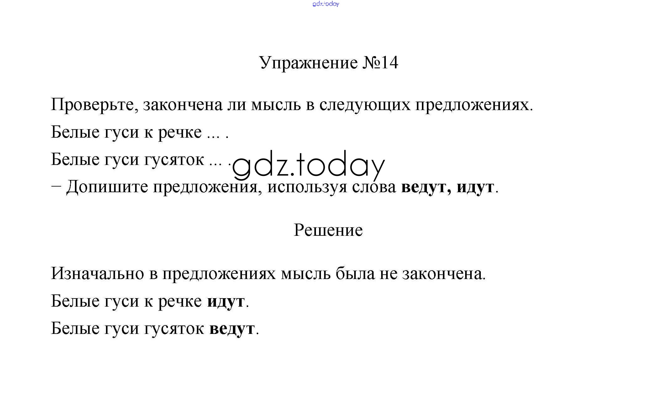 Ответы к Упражнения Решение. Часть 1 14 Учебнику по Русскому языку для 2 класса Климанова, Бабушкина Просвещение, Просвещение Перспектива 2015, 2020