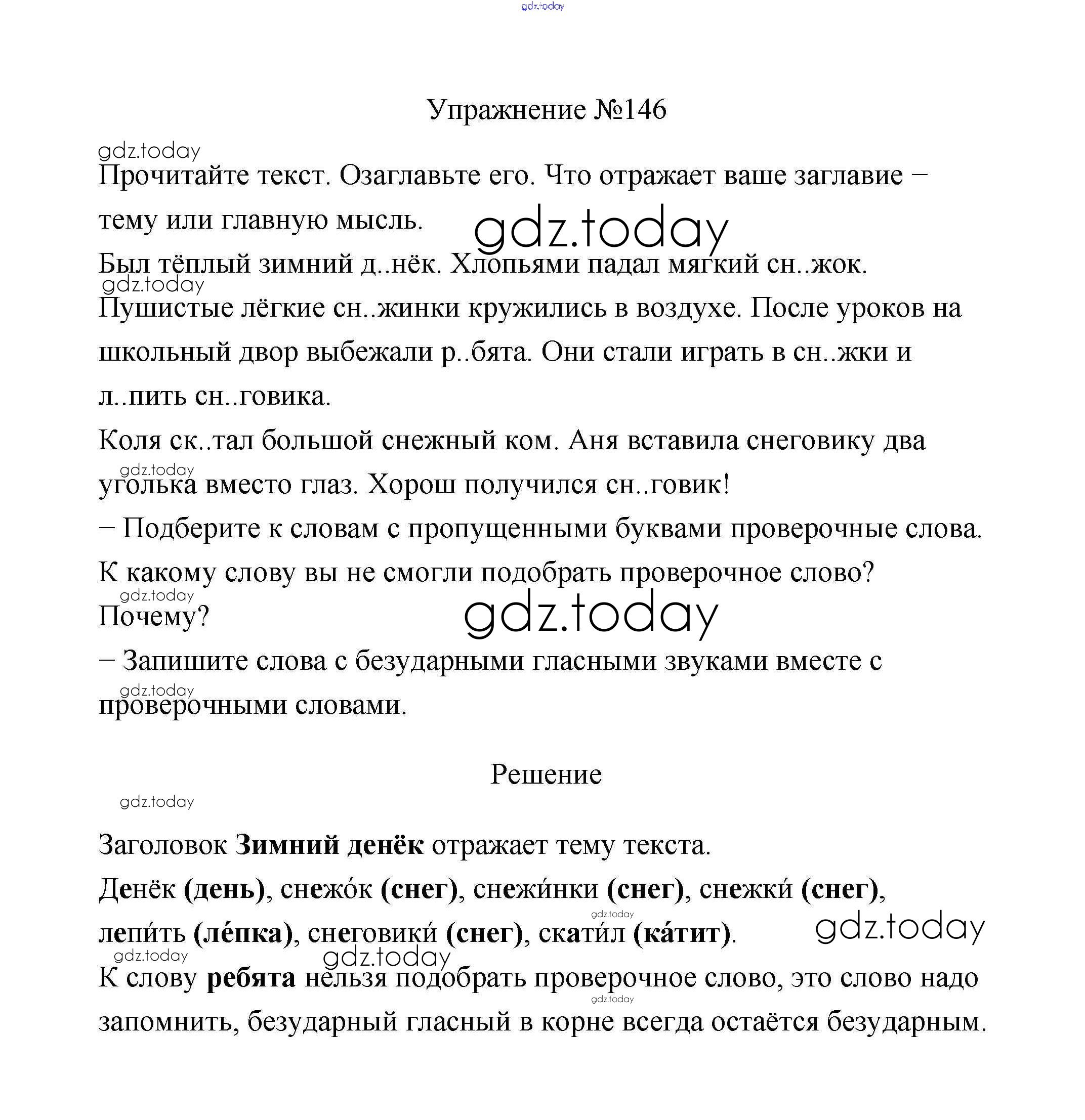 Ответы к Упражнения Решение. Часть 1 146 Учебнику по Русскому языку для 2 класса Климанова, Бабушкина Просвещение, Просвещение Перспектива 2015, 2020