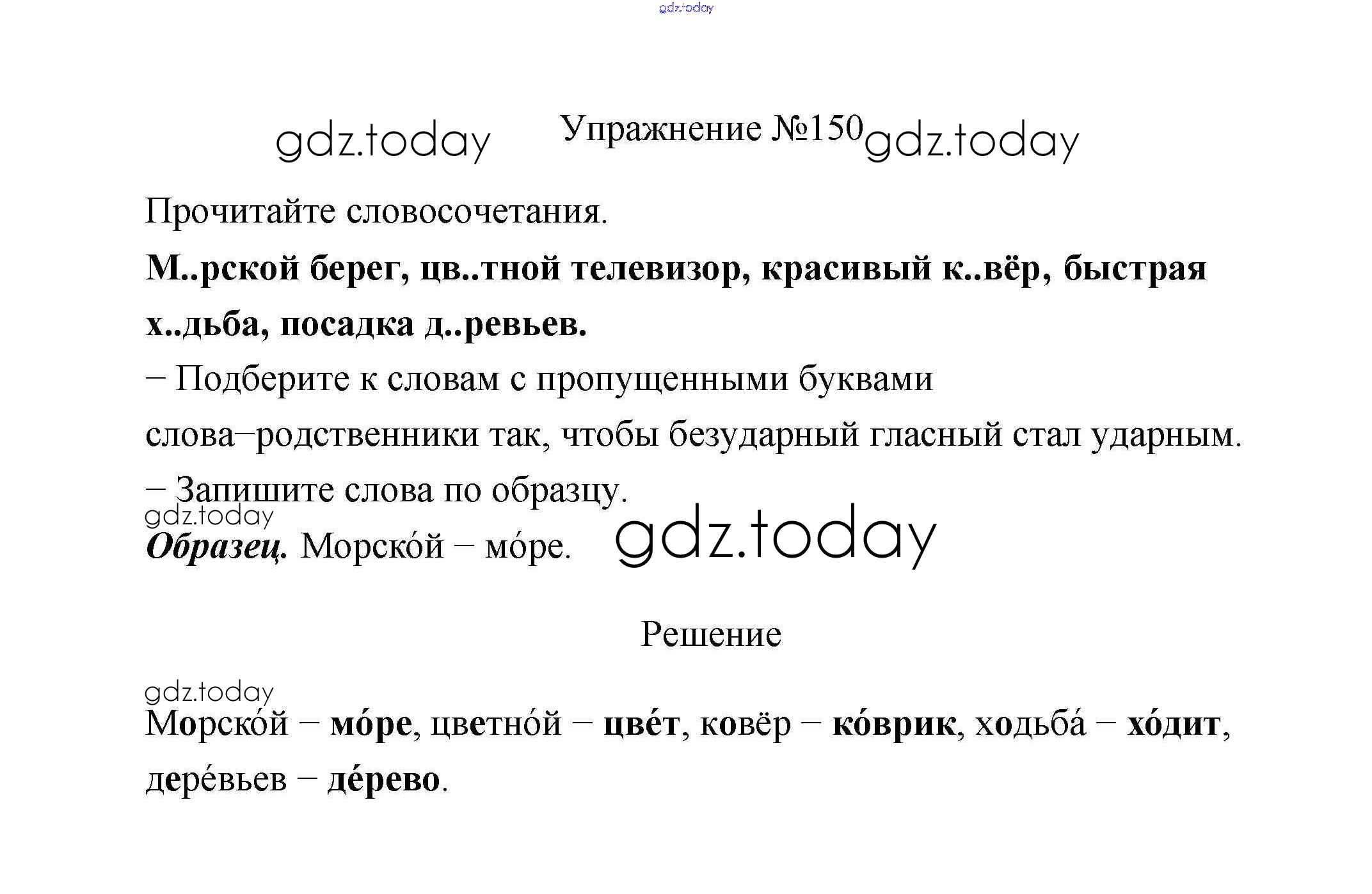 Ответы к Упражнения Решение. Часть 1 150 Учебнику по Русскому языку для 2 класса Климанова, Бабушкина Просвещение, Просвещение Перспектива 2015, 2020