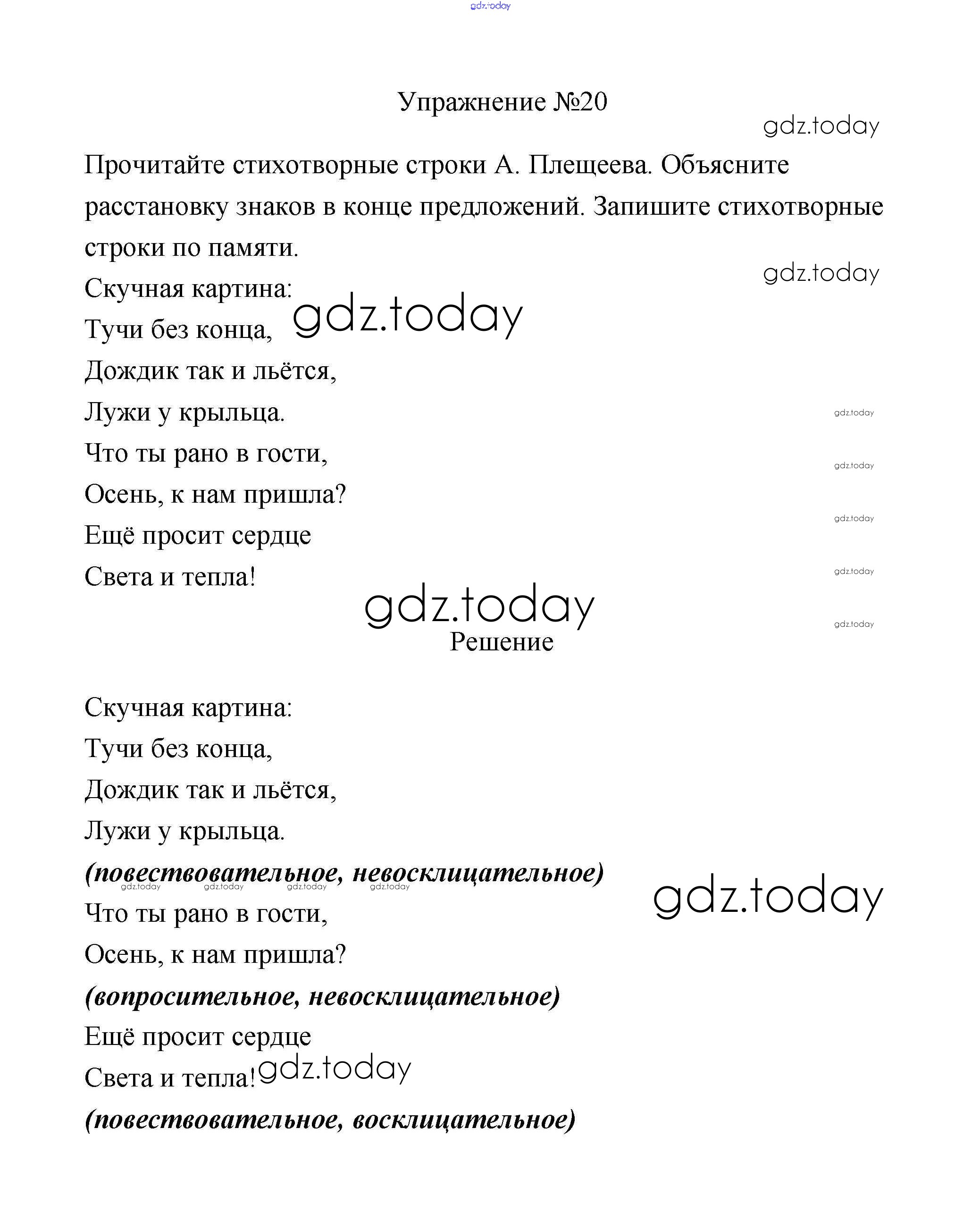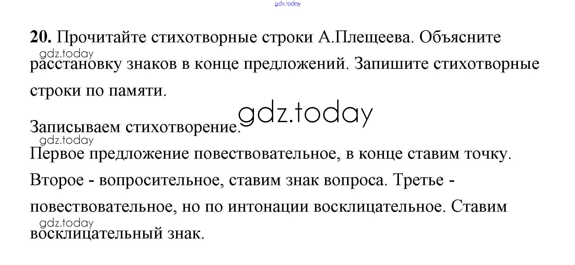 На страницах сайта gdz.today вы найдете учебный и вспомогательный материал, направленный на улучшения знаний школьной программы. ГДЗ - онлайн мир знаний Упражнения Решение. Часть 1 20 Учебнику по Русскому языку для 2 класса Климанова, Бабушкина Просвещение, Просвещение Перспектива 2015, 2020
