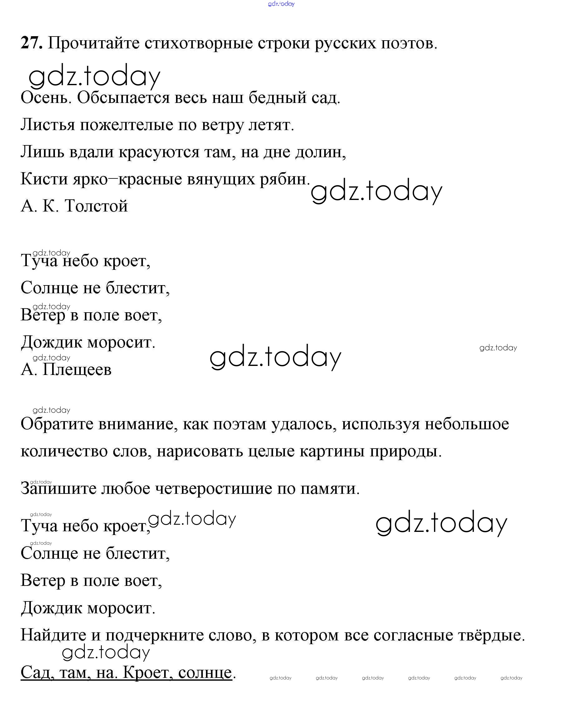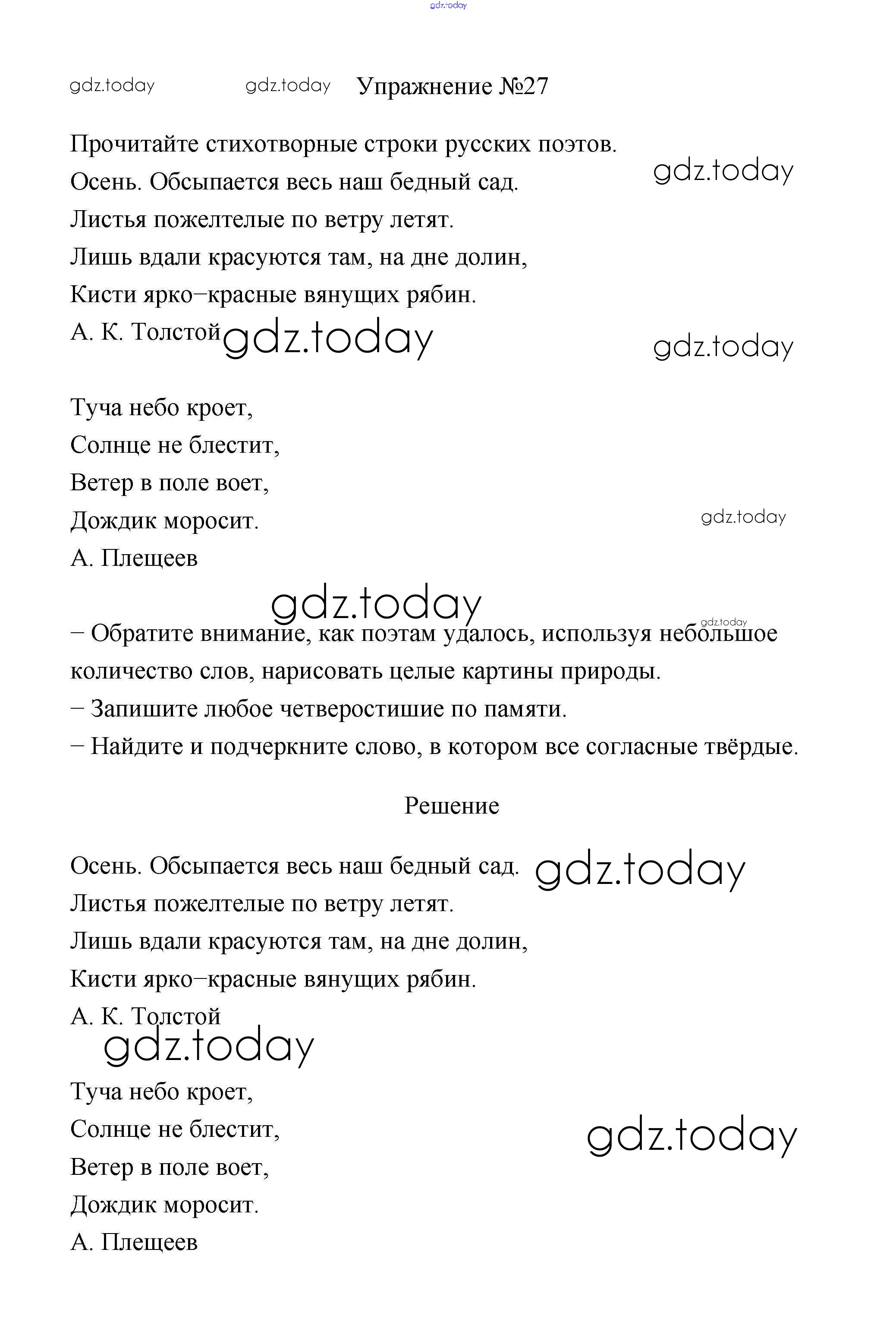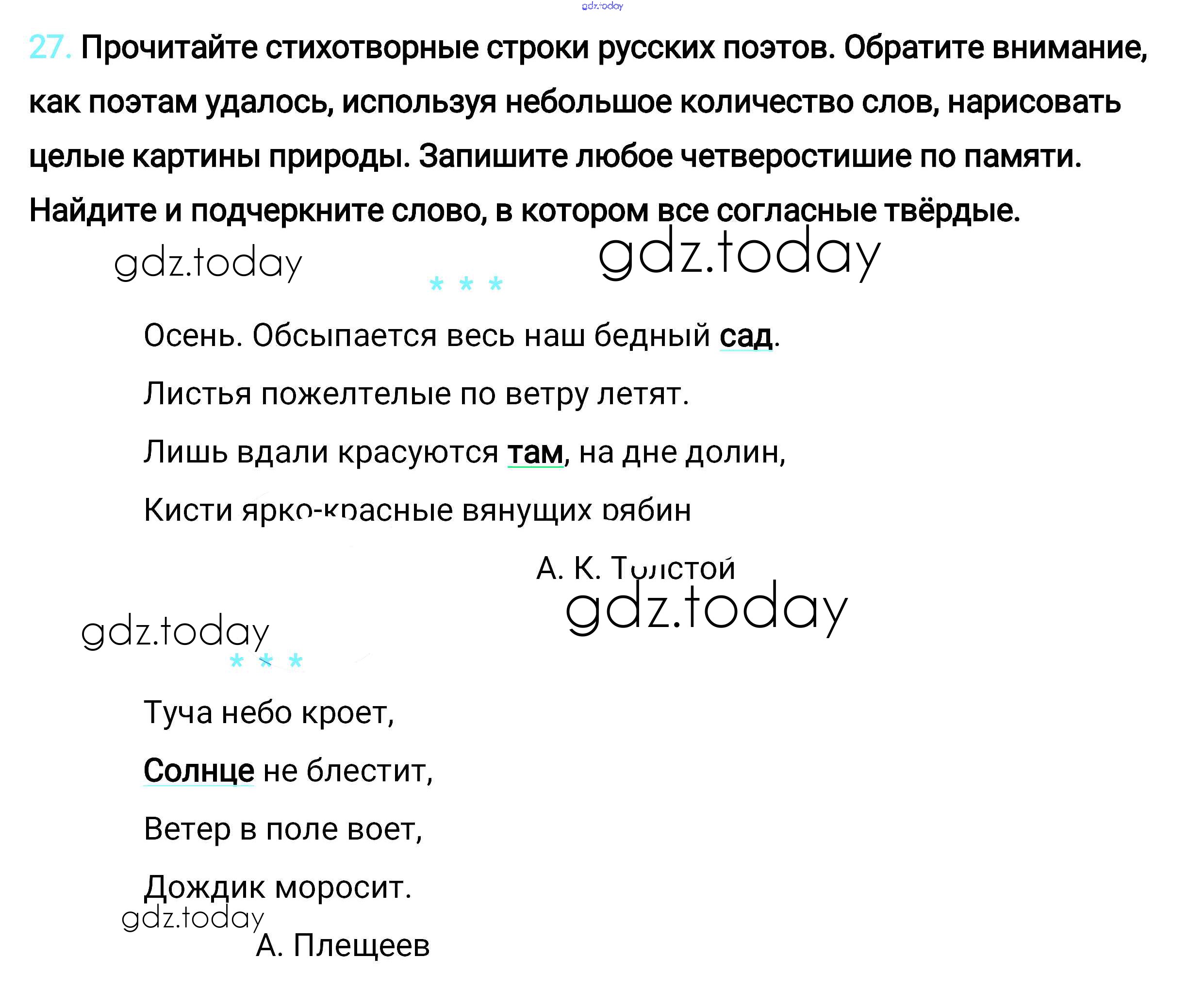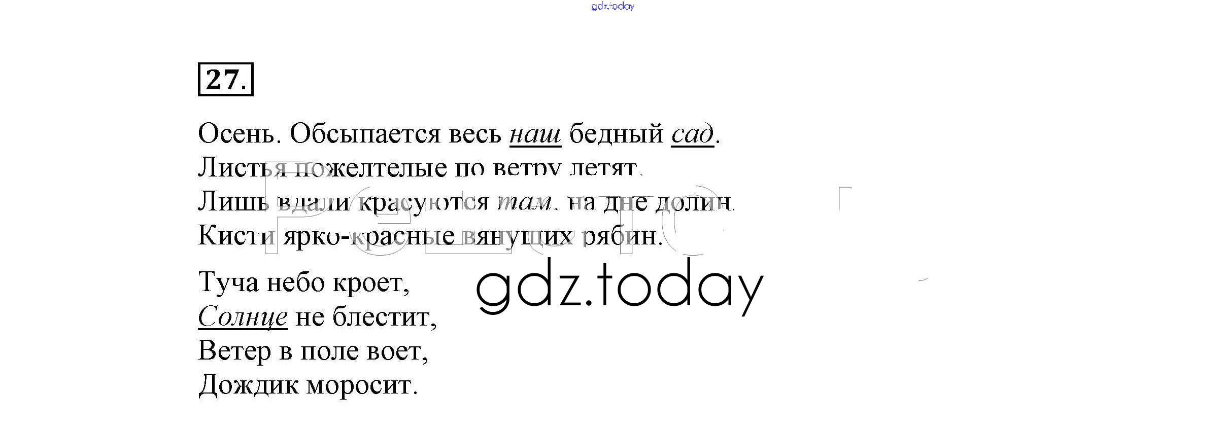 На страницах сайта gdz.today вы найдете учебный и вспомогательный материал, направленный на улучшения знаний школьной программы. ГДЗ - онлайн мир знаний Упражнения Решение. Часть 1 27 Учебнику по Русскому языку для 2 класса Климанова, Бабушкина Просвещение, Просвещение Перспектива 2015, 2020