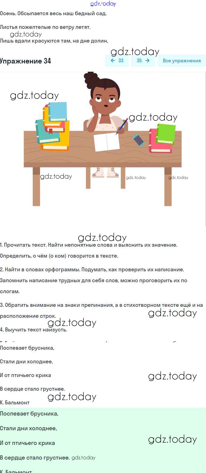 На страницах сайта gdz.today вы найдете учебный и вспомогательный материал, направленный на улучшения знаний школьной программы. ГДЗ - онлайн мир знаний Упражнения Решение. Часть 1 34 Учебнику по Русскому языку для 2 класса Климанова, Бабушкина Просвещение, Просвещение Перспектива 2015, 2020