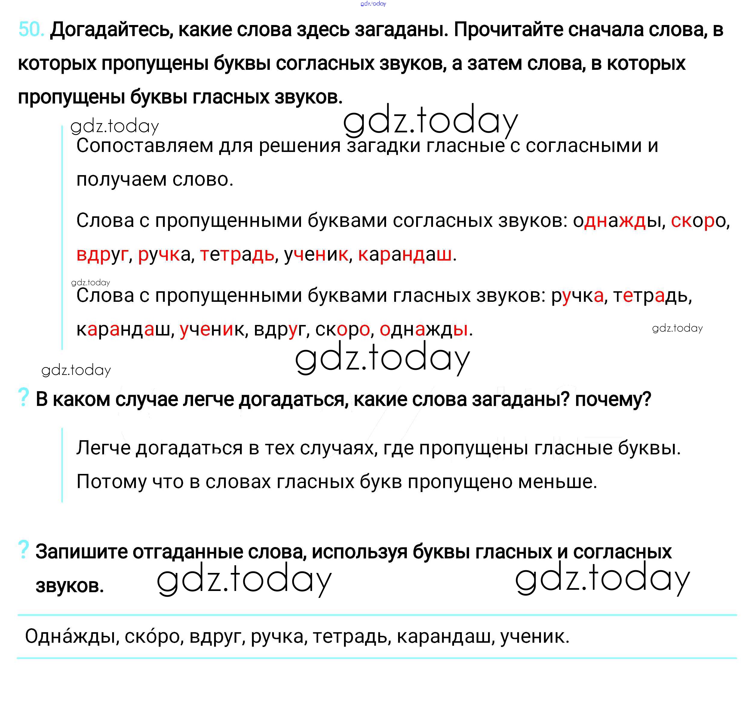 На страницах сайта gdz.today вы найдете учебный и вспомогательный материал, направленный на улучшения знаний школьной программы. ГДЗ - онлайн мир знаний Упражнения Решение. Часть 1 50 Учебнику по Русскому языку для 2 класса Климанова, Бабушкина Просвещение, Просвещение Перспектива 2015, 2020