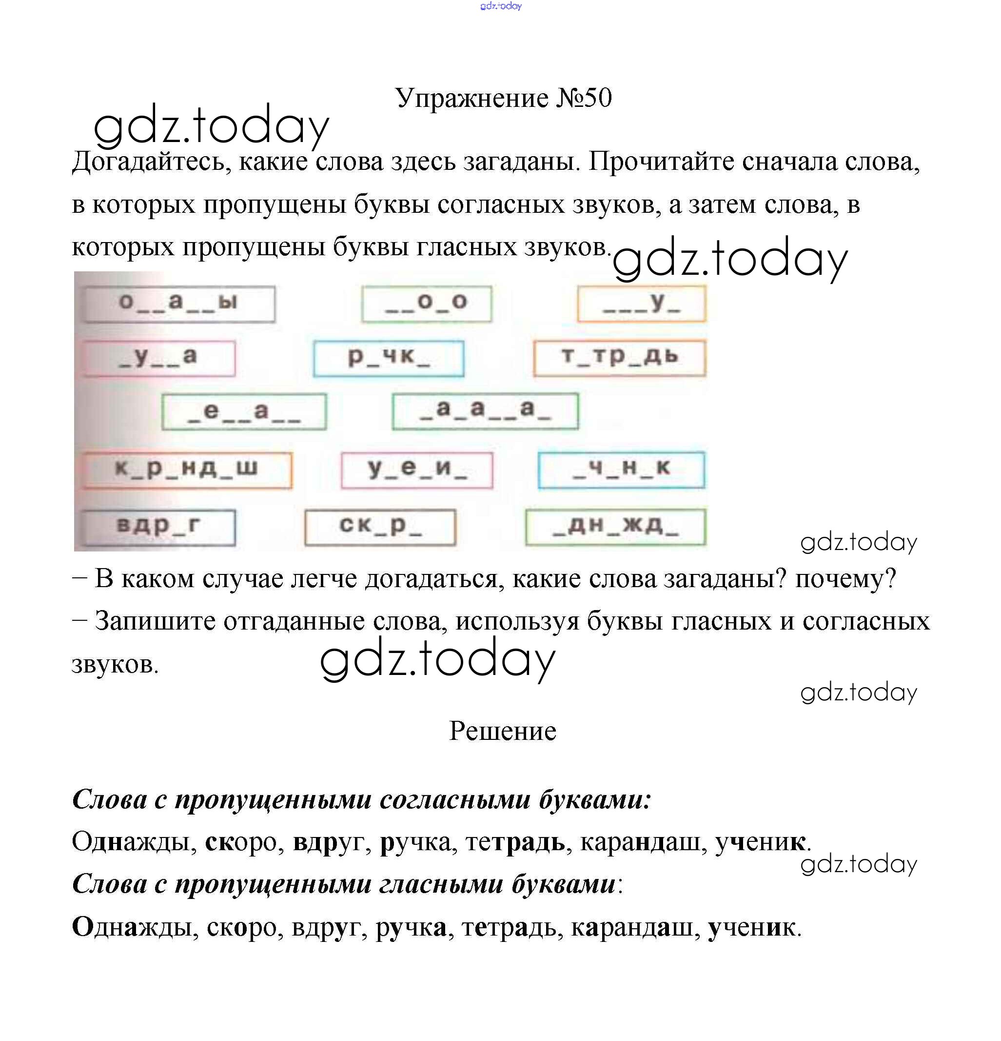 Ответы к Упражнения Решение. Часть 1 50 Учебнику по Русскому языку для 2 класса Климанова, Бабушкина Просвещение, Просвещение Перспектива 2015, 2020