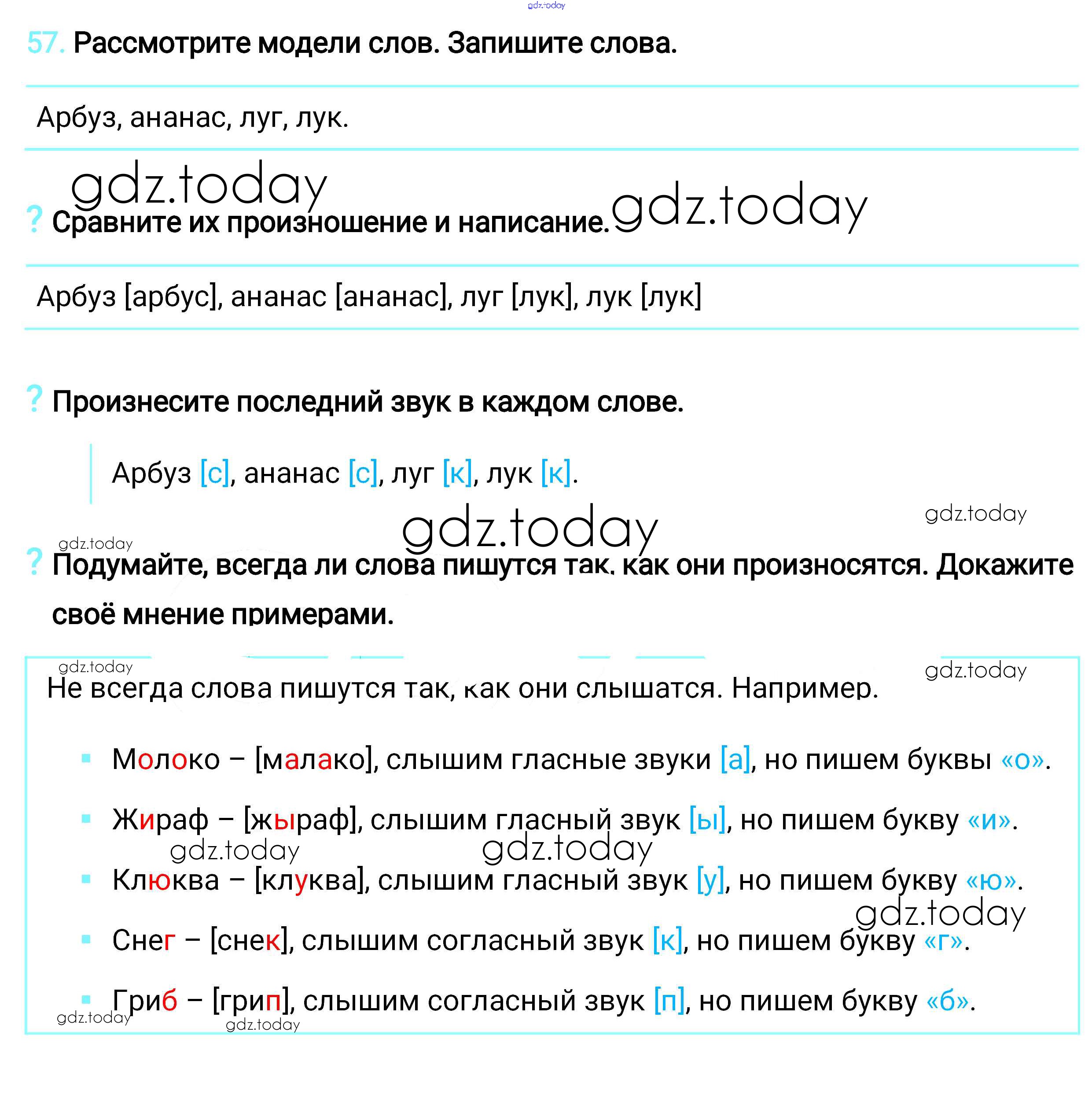 На страницах сайта gdz.today вы найдете учебный и вспомогательный материал, направленный на улучшения знаний школьной программы. ГДЗ - онлайн мир знаний Упражнения Решение. Часть 1 57 Учебнику по Русскому языку для 2 класса Климанова, Бабушкина Просвещение, Просвещение Перспектива 2015, 2020