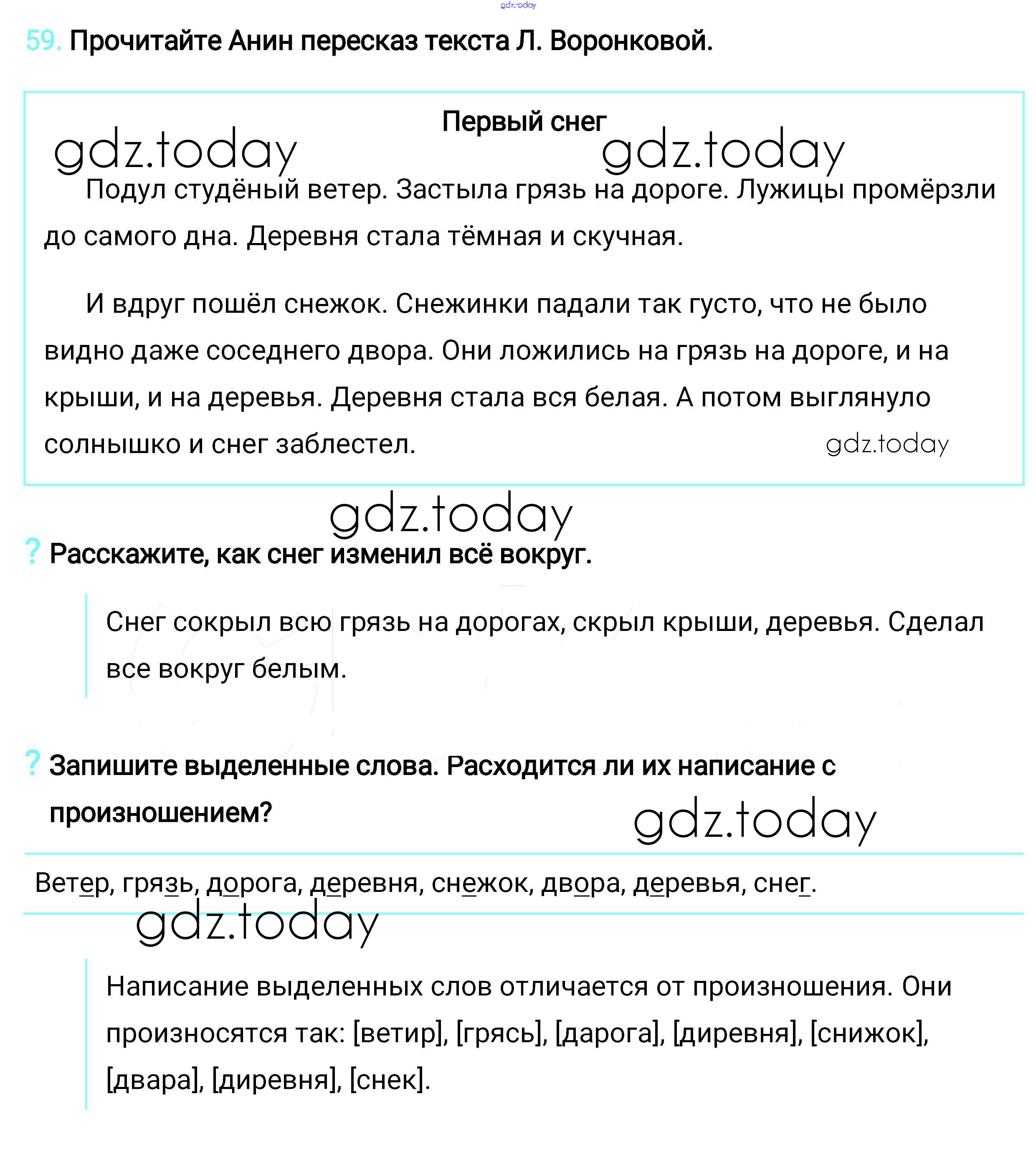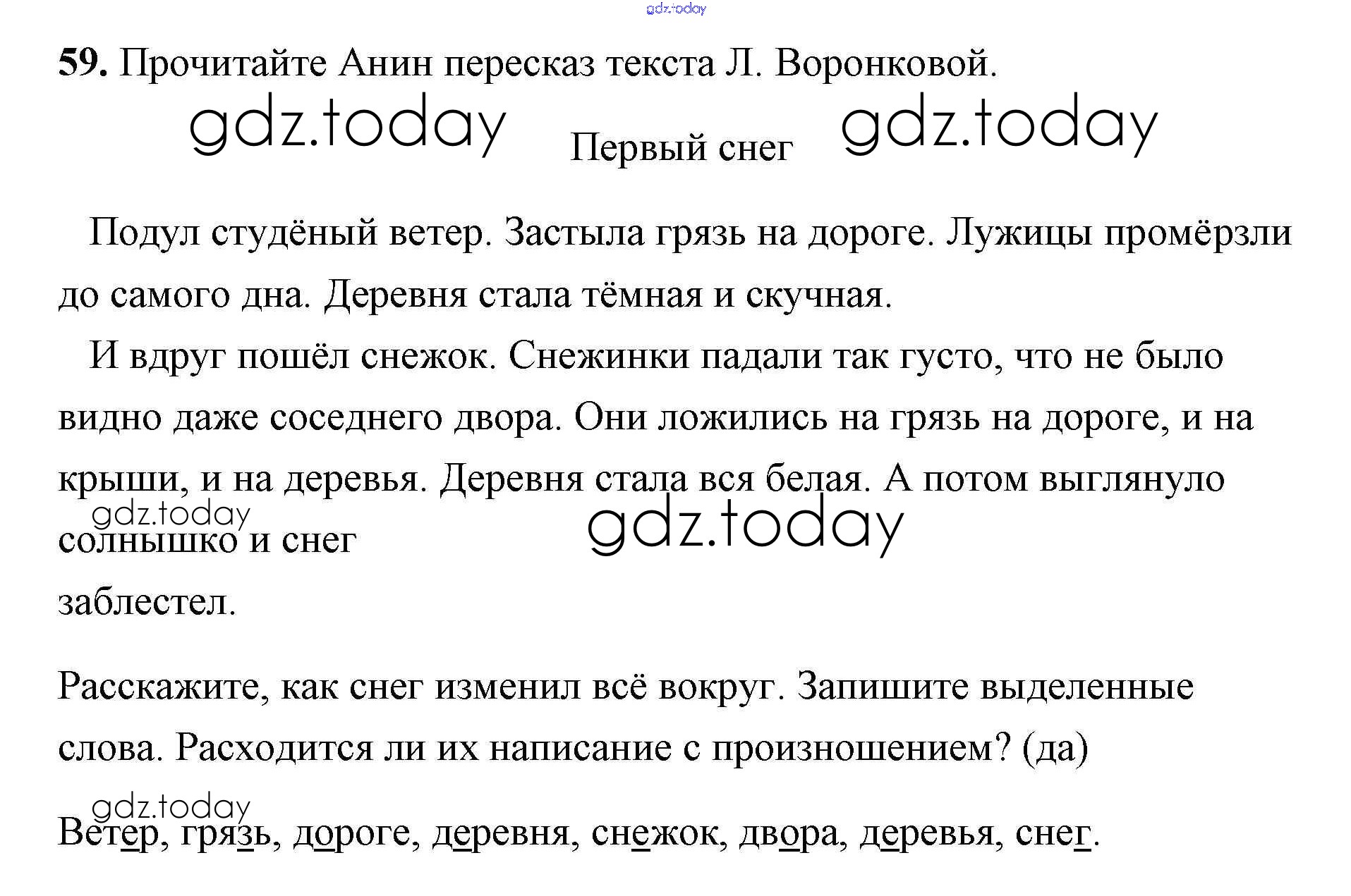 На страницах сайта gdz.today вы найдете учебный и вспомогательный материал, направленный на улучшения знаний школьной программы. ГДЗ - онлайн мир знаний Упражнения Решение. Часть 1 59 Учебнику по Русскому языку для 2 класса Климанова, Бабушкина  Просвещение, Просвещение Перспектива 2015, 2020