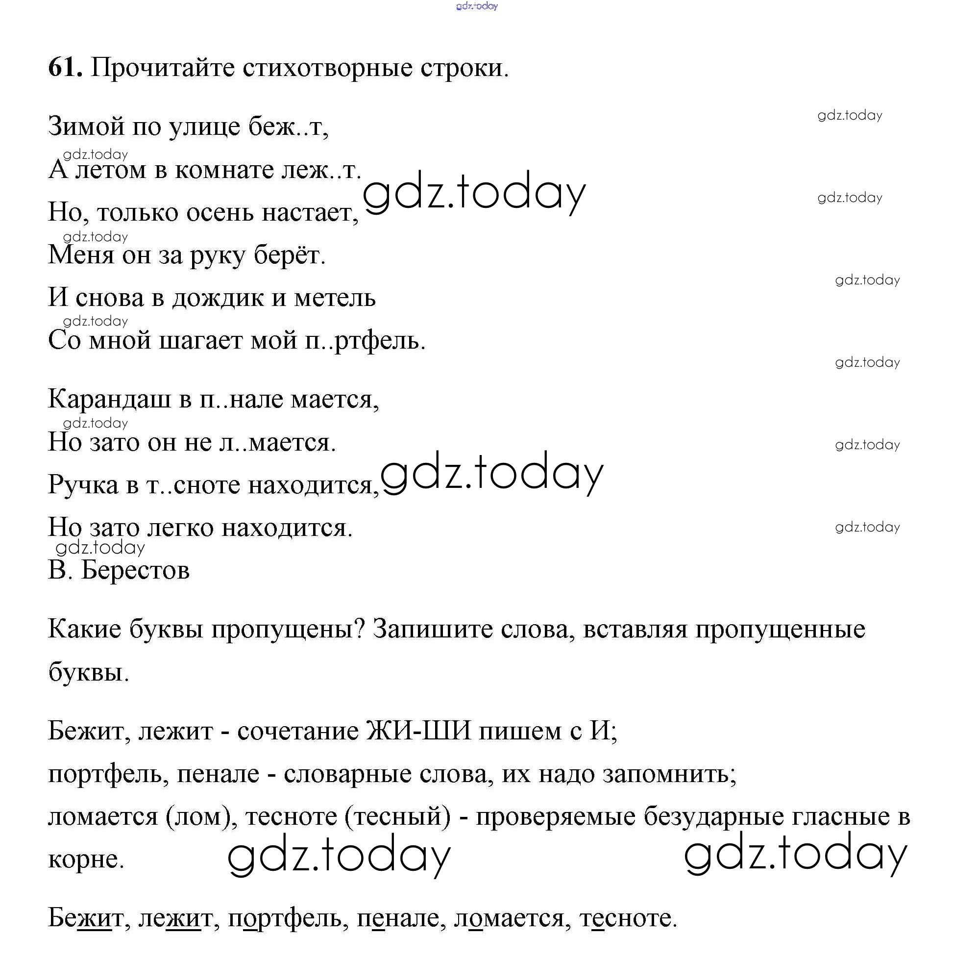 На страницах сайта gdz.today вы найдете учебный и вспомогательный материал, направленный на улучшения знаний школьной программы. ГДЗ - онлайн мир знаний Упражнения Решение. Часть 1 61 Учебнику по Русскому языку для 2 класса Климанова, Бабушкина Просвещение, Просвещение Перспектива 2015, 2020