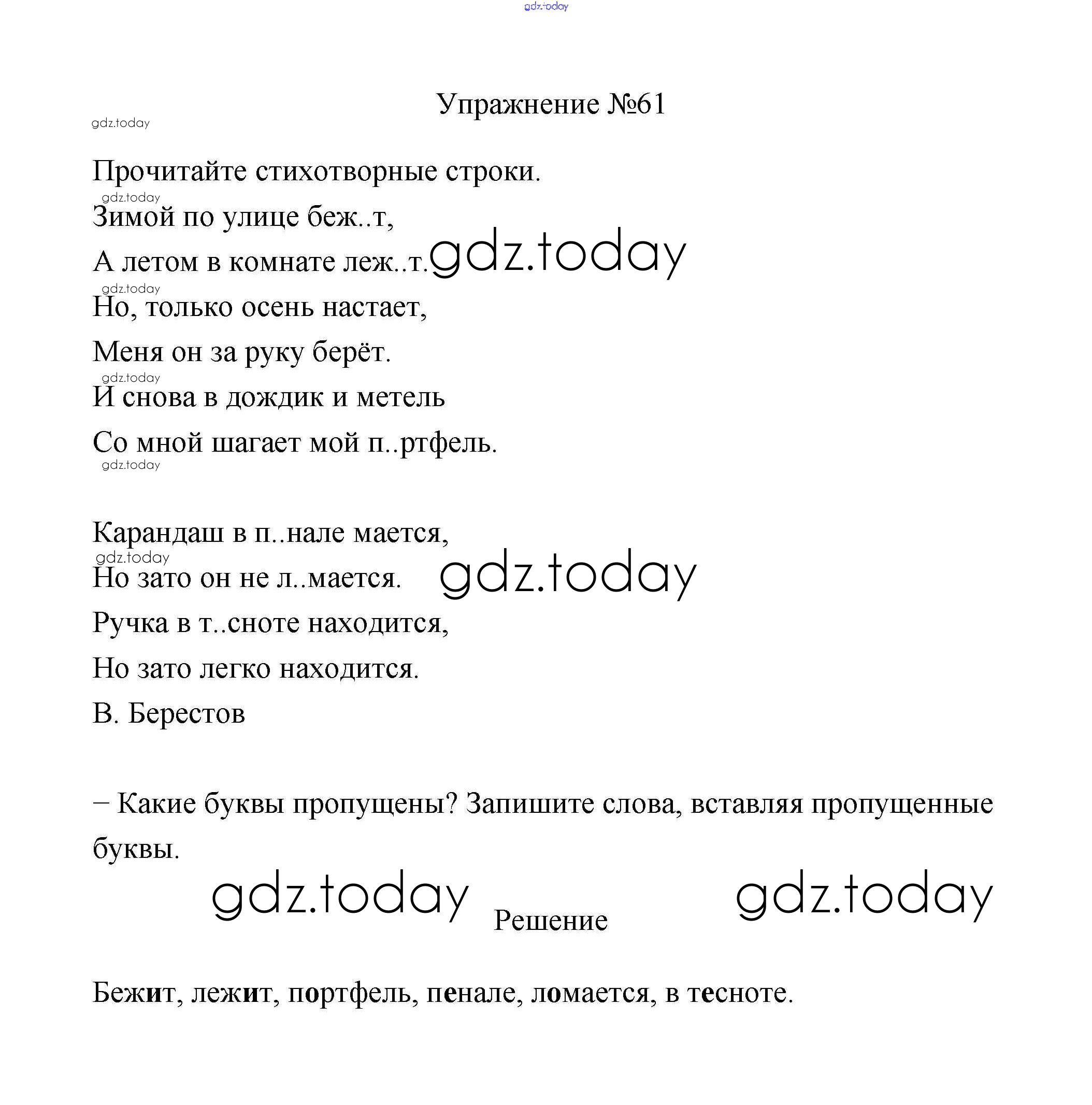 Ответы к Упражнения Решение. Часть 1 61 Учебнику по Русскому языку для 2 класса Климанова, Бабушкина Просвещение, Просвещение Перспектива 2015, 2020