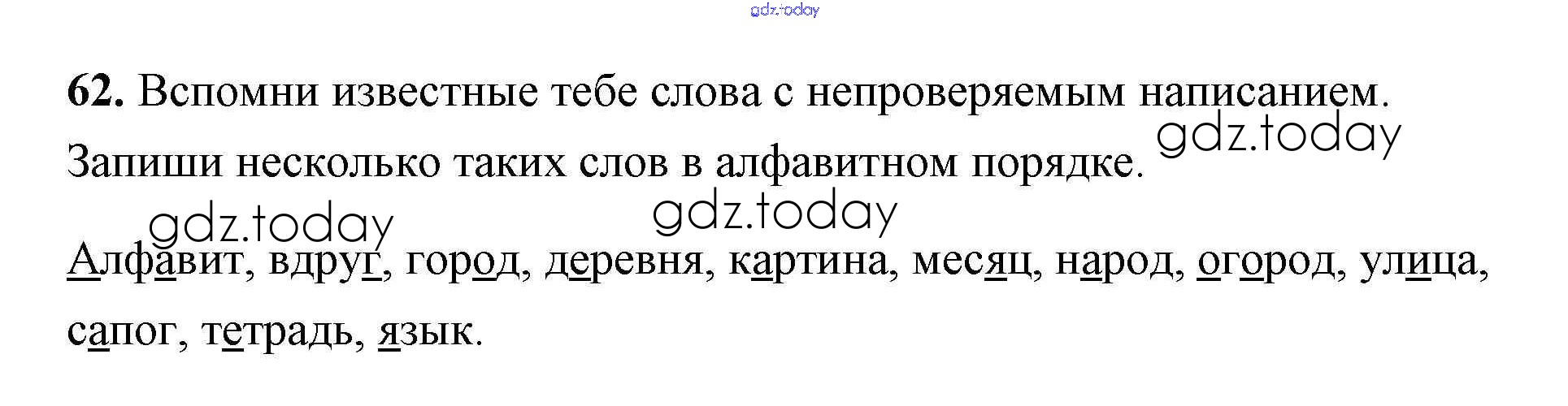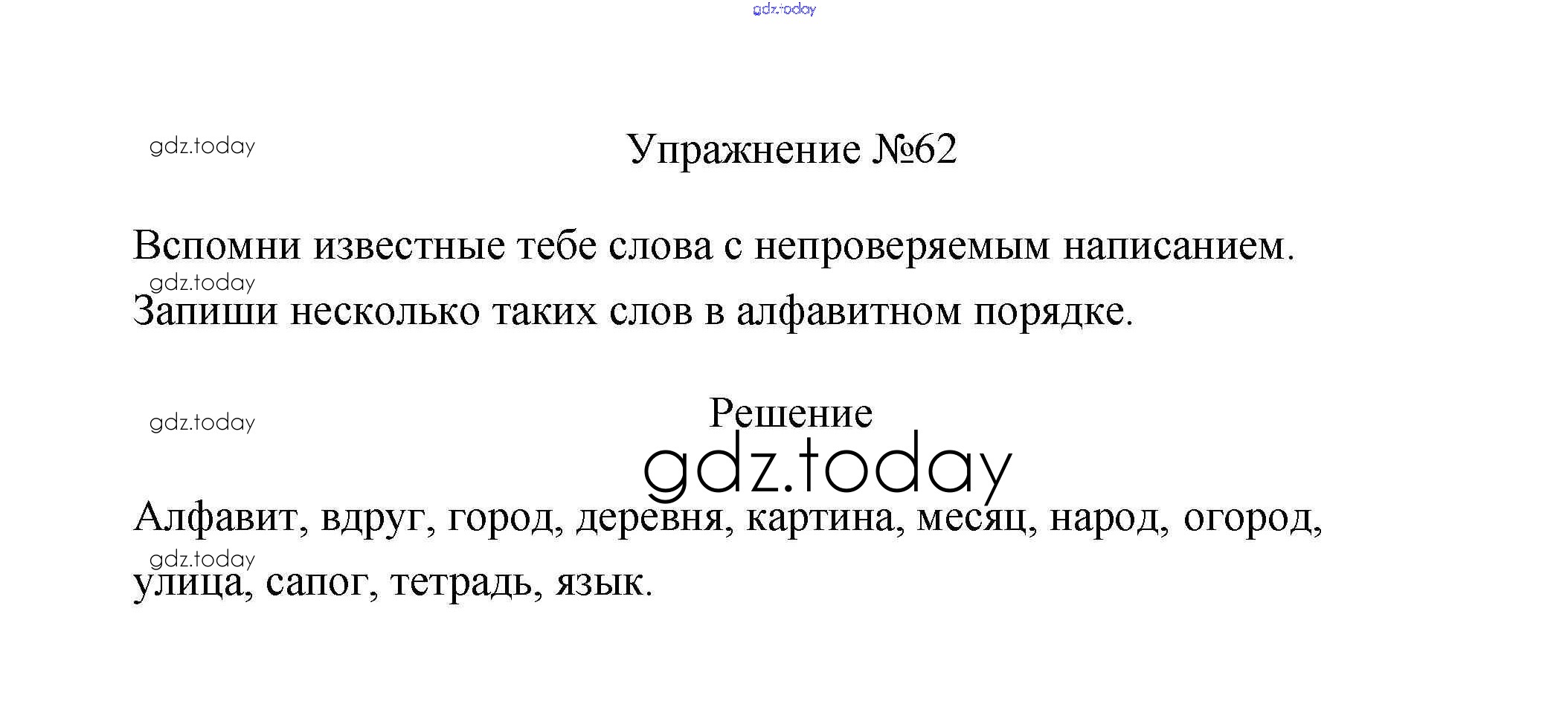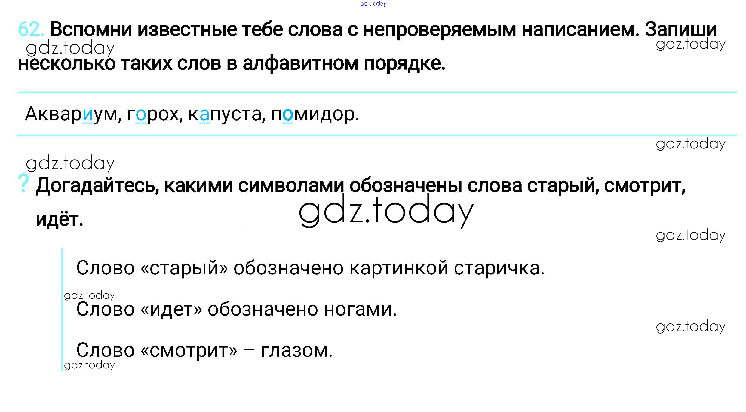 На страницах сайта gdz.today вы найдете учебный и вспомогательный материал, направленный на улучшения знаний школьной программы. ГДЗ - онлайн мир знаний Упражнения Решение. Часть 1 62 Учебнику по Русскому языку для 2 класса Климанова, Бабушкина Просвещение, Просвещение Перспектива 2015, 2020