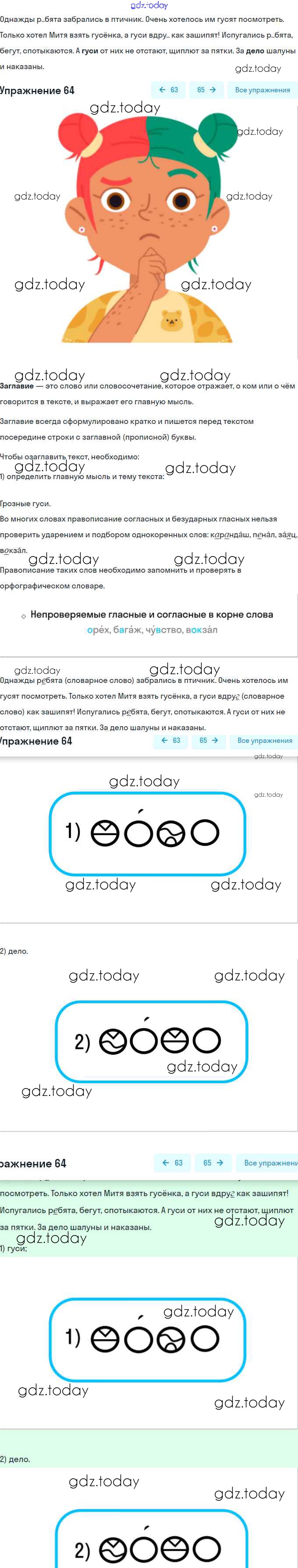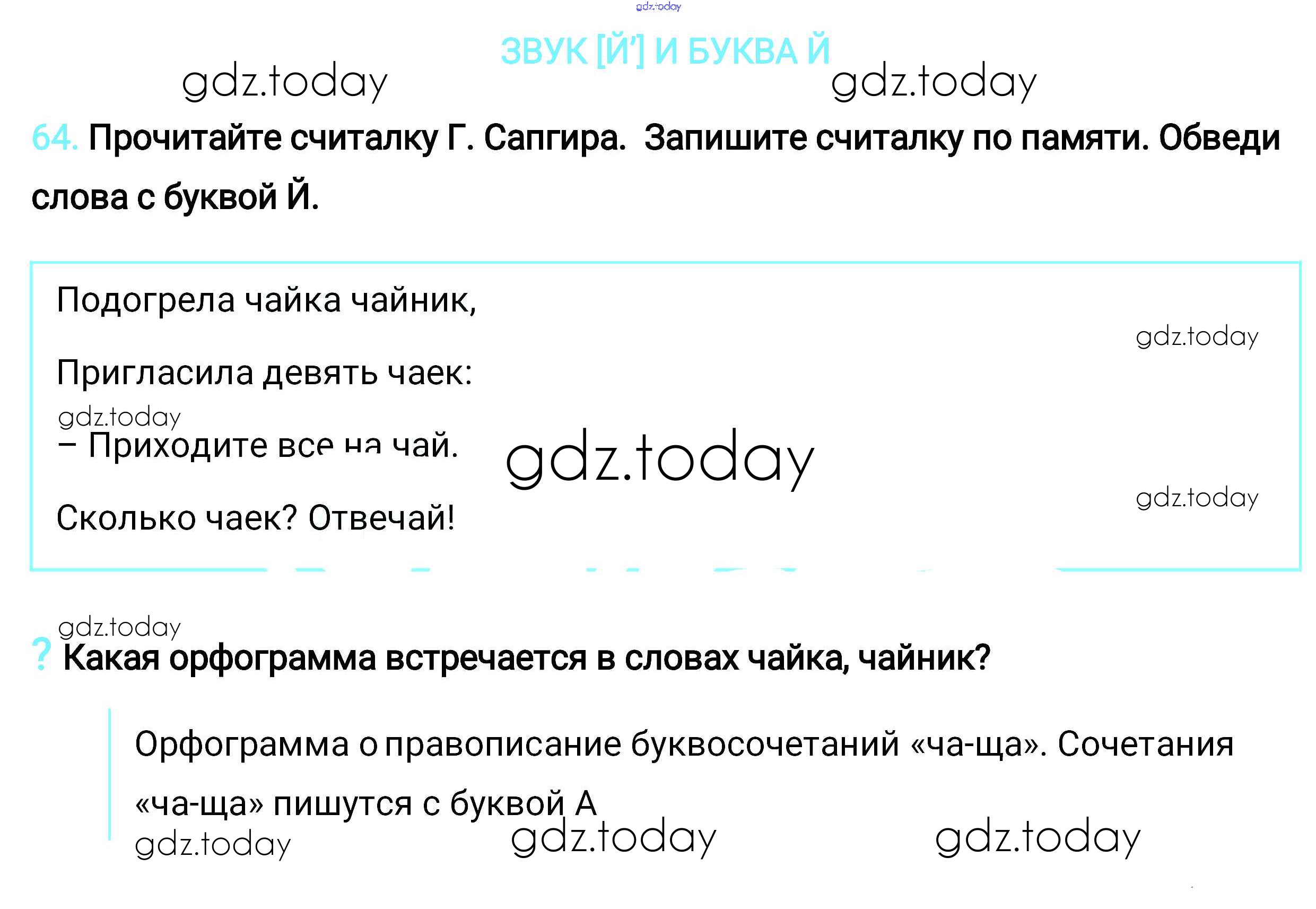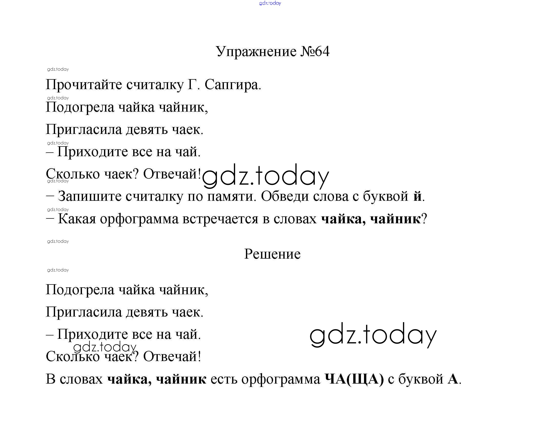 На страницах сайта gdz.today вы найдете учебный и вспомогательный материал, направленный на улучшения знаний школьной программы. ГДЗ - онлайн мир знаний Упражнения Решение. Часть 1 64 Учебнику по Русскому языку для 2 класса Климанова, Бабушкина  Просвещение, Просвещение Перспектива 2015, 2020