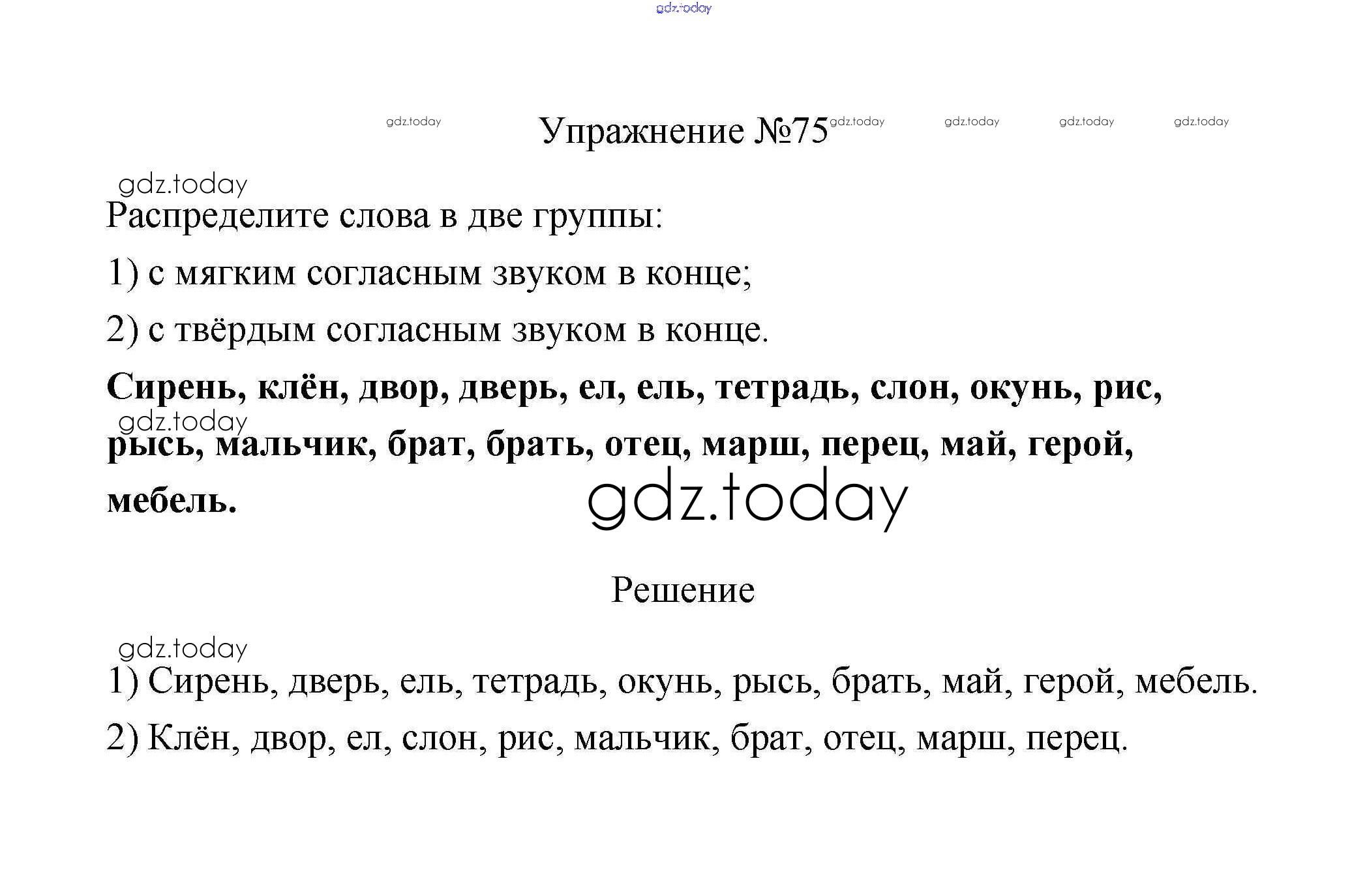 На страницах сайта gdz.today вы найдете учебный и вспомогательный материал, направленный на улучшения знаний школьной программы. ГДЗ - онлайн мир знаний Упражнения Решение. Часть 1 75 Учебнику по Русскому языку для 2 класса Климанова, Бабушкина Просвещение, Просвещение Перспектива 2015, 2020