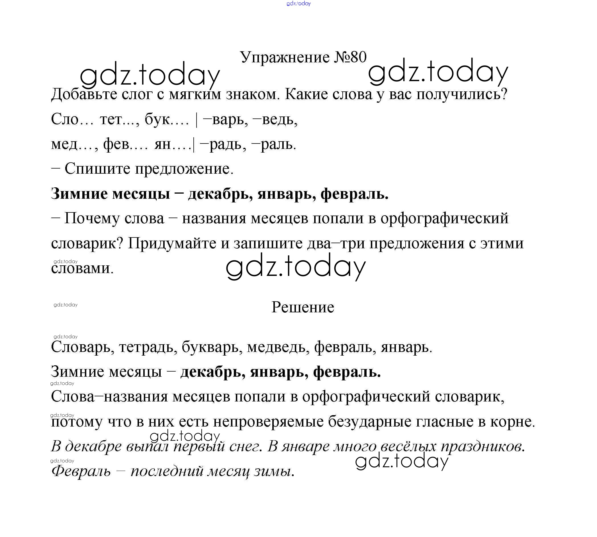 На страницах сайта gdz.today вы найдете учебный и вспомогательный материал, направленный на улучшения знаний школьной программы. ГДЗ - онлайн мир знаний Упражнения Решение. Часть 1 80 Учебнику по Русскому языку для 2 класса Климанова, Бабушкина Просвещение, Просвещение Перспектива 2015, 2020