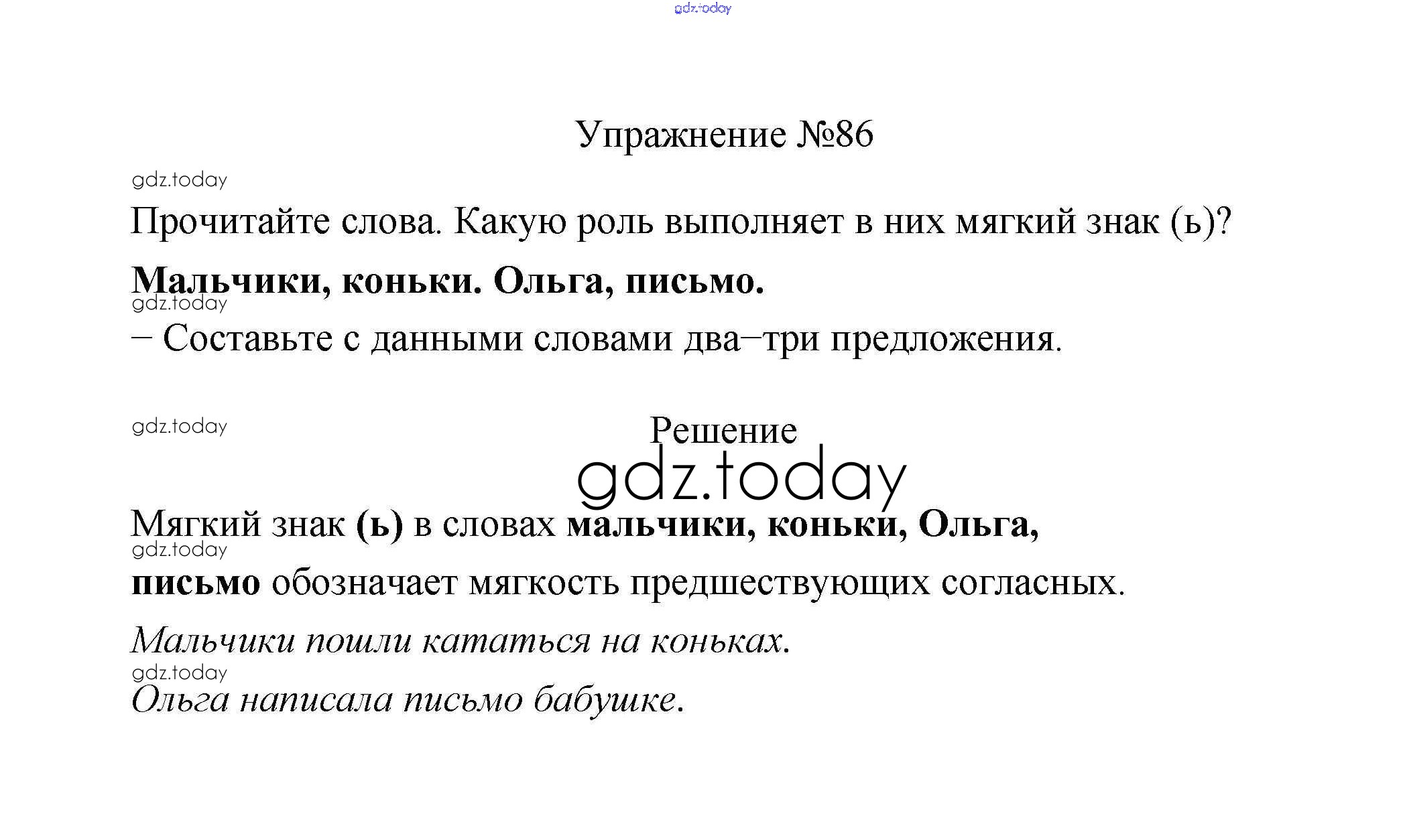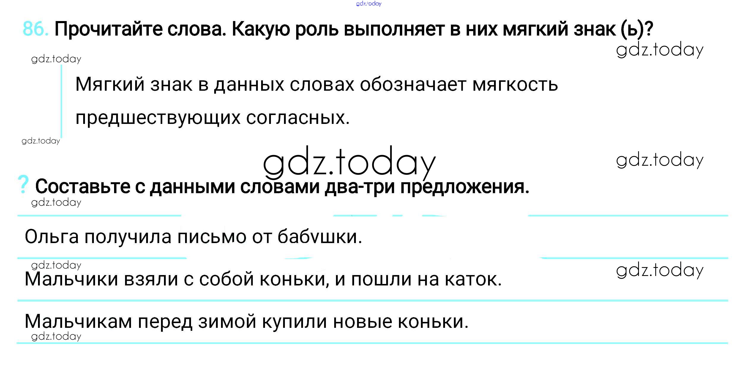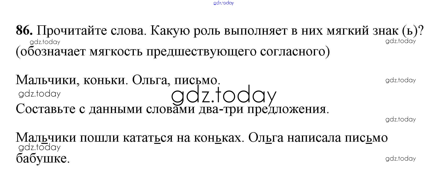 На страницах сайта gdz.today вы найдете учебный и вспомогательный материал, направленный на улучшения знаний школьной программы. ГДЗ - онлайн мир знаний Упражнения Решение. Часть 1 86 Учебнику по Русскому языку для 2 класса Климанова, Бабушкина Просвещение, Просвещение Перспектива 2015, 2020