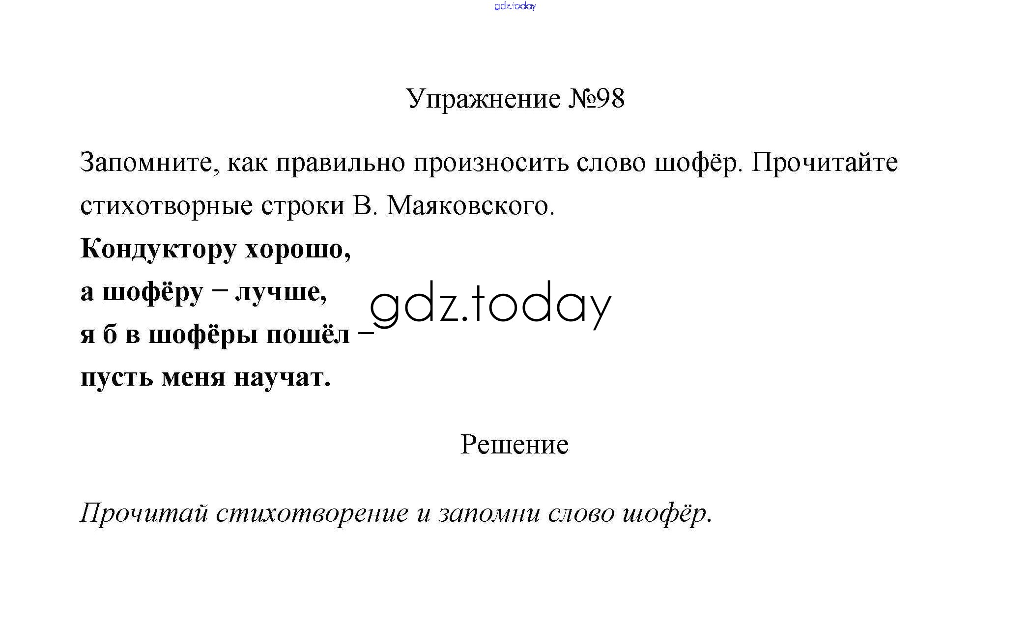 На страницах сайта gdz.today вы найдете учебный и вспомогательный материал, направленный на улучшения знаний школьной программы. ГДЗ - онлайн мир знаний Упражнения Решение. Часть 1 98 Учебнику по Русскому языку для 2 класса Климанова, Бабушкина Просвещение, Просвещение Перспектива 2015, 2020